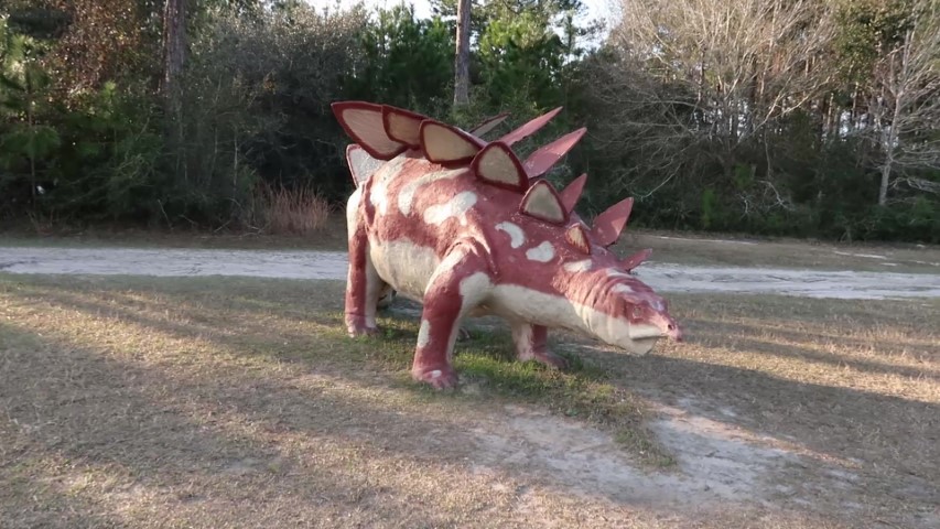 Stonehenge and dinosaurs. Both are mysterious, gigantic, awe-inspiring relics of a distant past. And you can encounter both of them at Bamahenge, in rural Alabama. Dennis was in for quite a surprise as Kimberly drove to this remote location without explanation – he wasn’t blindfolded, but he might as well have been. Let’s face it, when you approach a clearing in the woods, the last thing you expect to encounter is a Stonehenge or a stegosaurus.