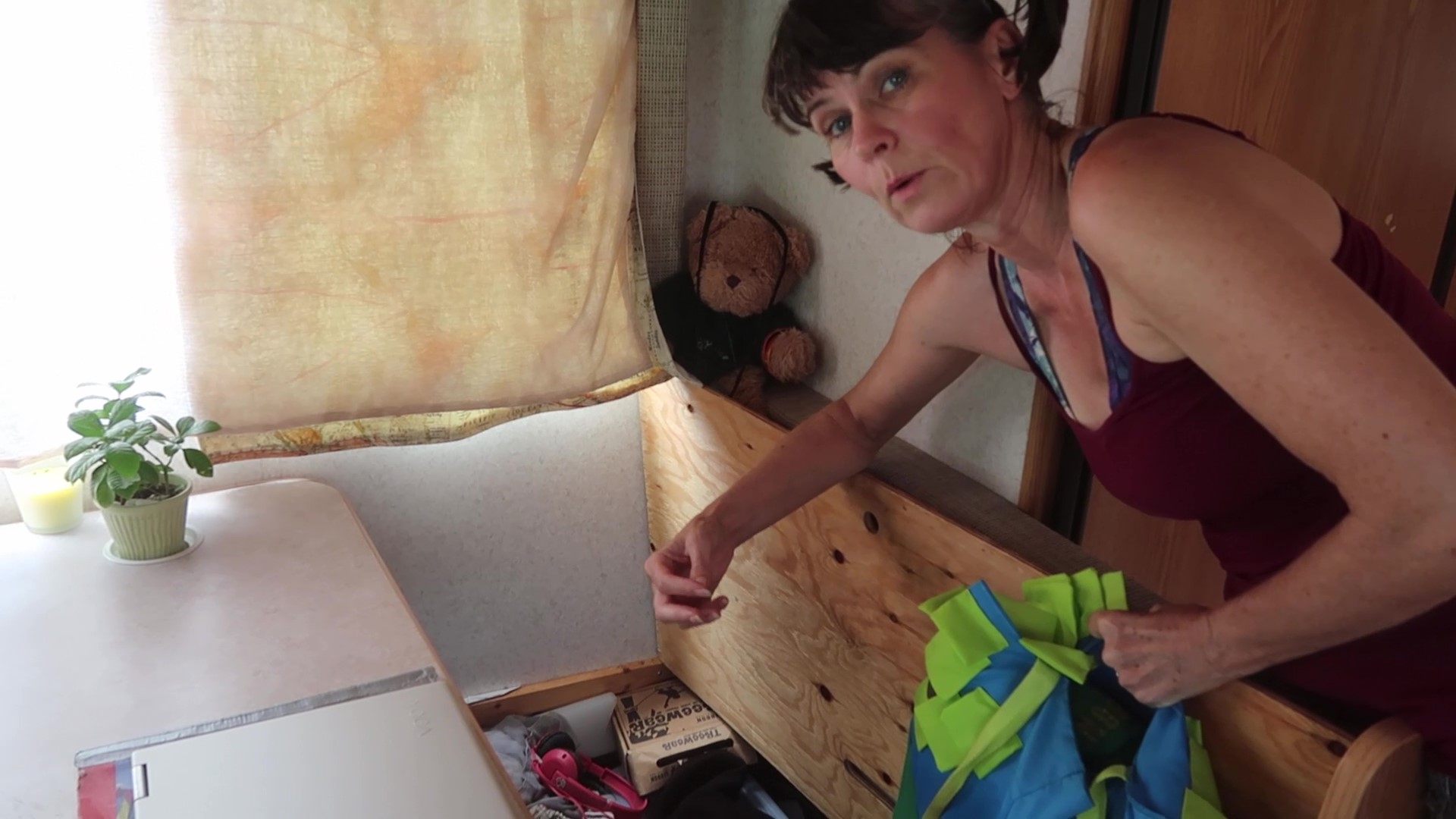 Having lived on wheels in a variety of vehicles for the past 27 years, we’ve become experts on converting tiny spaces into spacious mansions. There are two keys: minimalism (not having much stuff) and efficiency (making the most of the space available). Our possessions are few and generally tiny – though Dennis sometimes violates this rule by accumulating too many books (we generally rely on audiobooks instead). And we’ve learned to use every nook and cranny for storage or other uses; sometimes one space will serve more than one function.