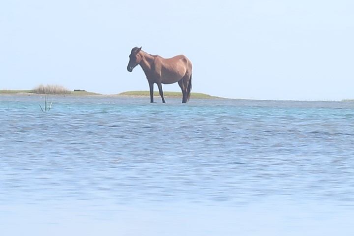 It’s only a short ride to Shackleford, and we spotted horses right away. Altogether, we counted 14 of them in the 3 hours or so we were there. In addition to crabs, birds, fish and jellyfish. And a few stinging and biting insects.