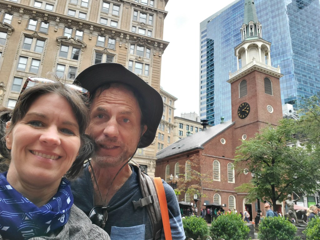 While we were in Boston, we visited the very old King’s Chapel, and took the Bones and Bells tour, which involved going down in the basement to see the crypts where people were buried 200 years ago (and many are still there) and then up the rickety old steps to the bell tower to see, and even touch, the church’s bell, the last bell cast by Paul Revere. Yes, THE Paul Revere.