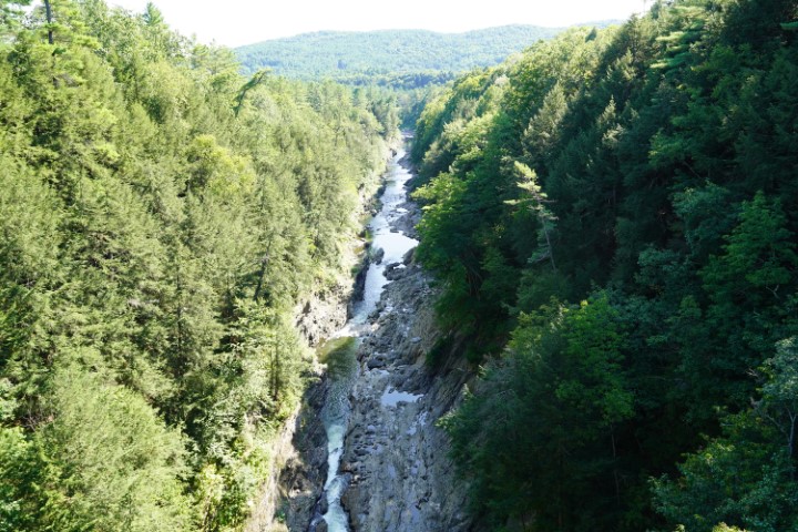 Finally, in Vermont, we hiked the unpronounceable gorge (Quechee Gorge) and then we headed out for several days that would include gorgeous scenery, hiking, a maple farm, a celebrated teddy bear factory, comic book history, a dinner train ride, a boat cruise, the Cabot cheese factory, and the headquarters of Ben and Jerry’s ice cream. Stay tuned.