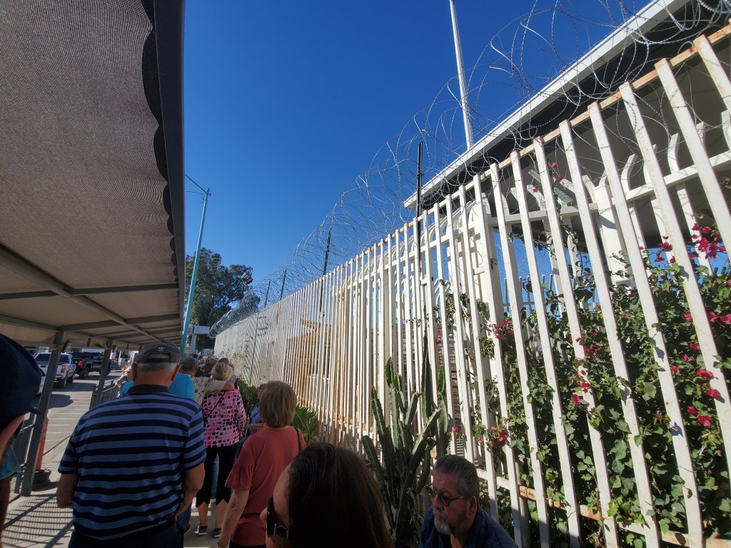 The crossing into Mexico was quick and easy, and there was no wait involved. We just walked through the revolving gate and presto, we were in a foreign country that had a very different vibe from what we’d just left. For one thing, we immediately encountered a gauntlet of hawkers asking us if we needed a dentist. We told them we already had one, and they asked if we needed help with directions. (It’s likely that they expected tips for such guidance, in addition to the kickbacks they received from the dentists.) But you’d be foolish if you went into Molar City for dental work without having a dentist selected and researched well in advance; as in the U.S. or any other country, most dentists are reputable, but there are also some to be avoided.