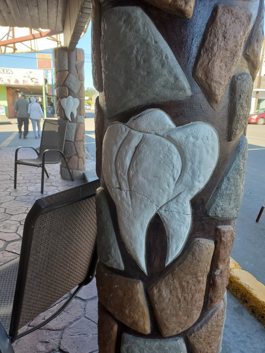 The reception room of the endodontist (Dr. Jose Armando Hernandez Mejia) was, like the other reception room, quite aesthetically pleasing and had some especially cool artistic touches. Kimberly’s debut in the world of root canals, however, was not quite so cool; because the problem had progressed for so long, the roots had become calcified, which basically means they had turned into concrete, and drilling them out required an effort just shy of jack hammers and TNT. It was so exhausting for both doctor and patient that it was divided into two sessions; the doctor did half of the work on this first day, then had her return a few days later to complete it. And despite the extra time and effort and the additional office visit, there was no additional cost.