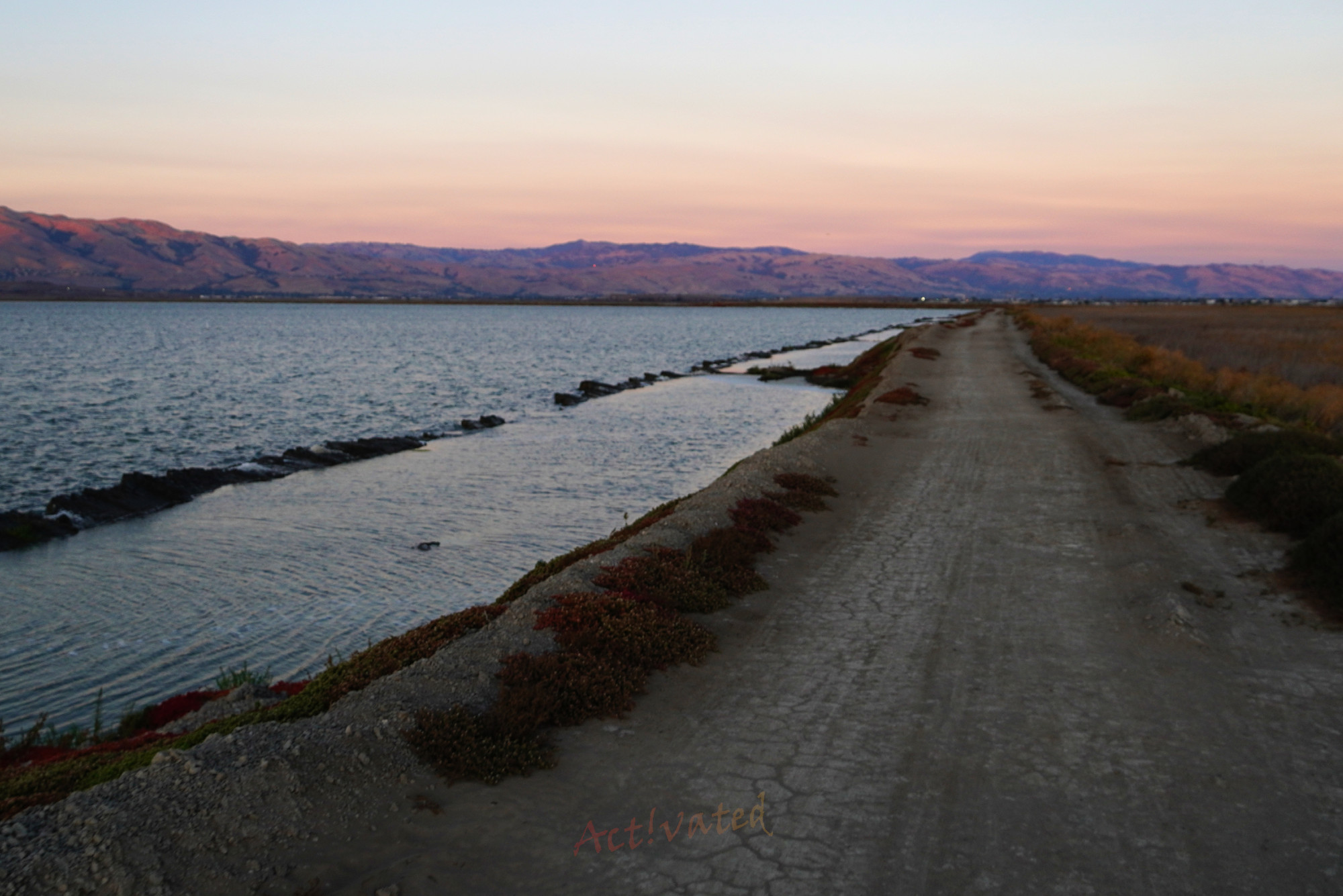 During our meanderings with our new “we’re-not-in-any-hurry-to-get-anywhere-or-do-anything-attitude” we stumbled upon Alviso Marina County Park, located at the very bottom of the San Francisco Bay on the north end of San Jose. Typically we prefer hikes with a modicum of shade. Well, being that this park features trails along salt marshes and sprawling views of the marina, shade was not an option. So one of us, we won’t say who (Kimberly) took off a just before sunset, not wanting to be in the searing sun, with her camera on a leisurely stroll.