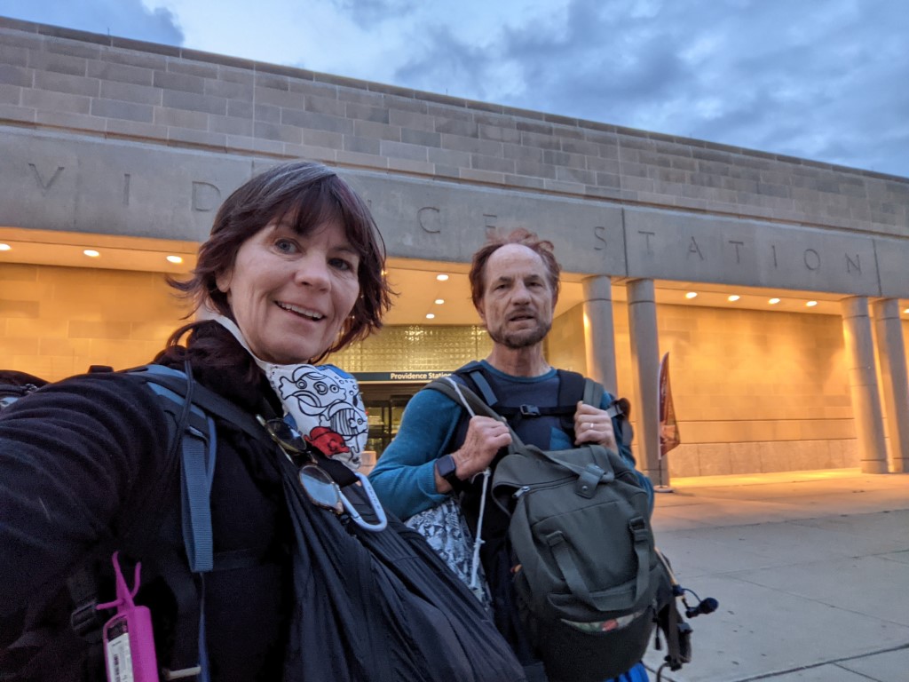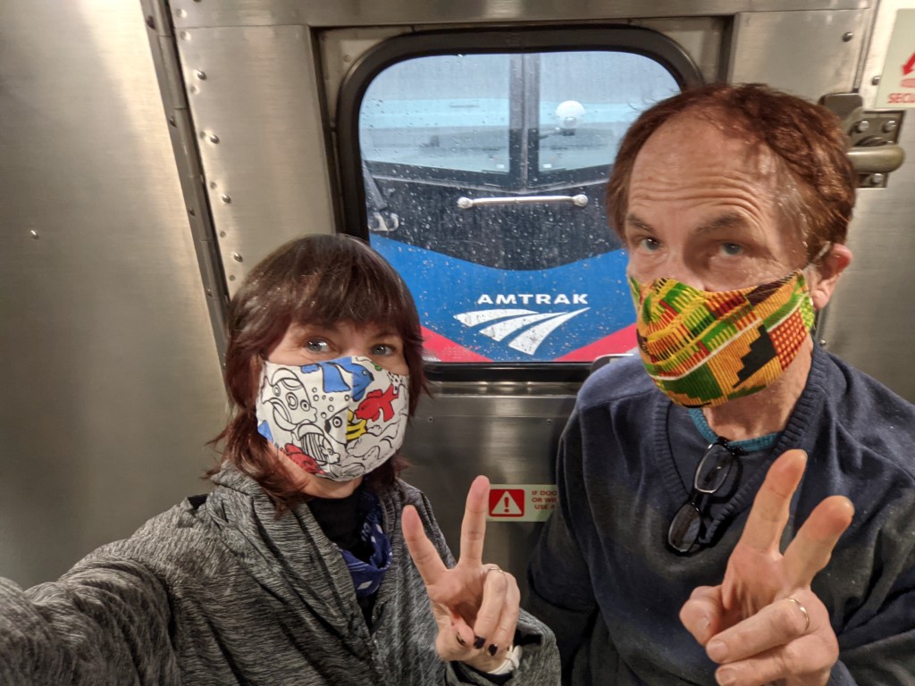 5:30 alarm. Woke up from a half sleep on the floor of our son’s home office. Squeaky air mattress, whirring minds and a lingering haunter’s cough kept at least one of us up part of the night. It’s time to leave because yes, we have a train to catch. Rushed to get dressed and out the door; we’d have breathed easier if the alarm had been set for 15 minutes earlier. But 5:15 am sounded ridiculous when you’re adjusting from the late nights of haunt life.