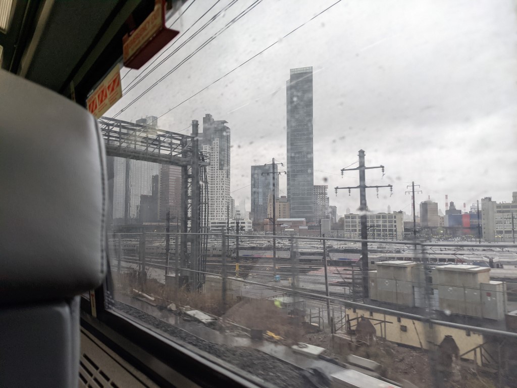 Arrived in NYC at the scheduled time. Most of the other passengers exited en masse. Seems New York City is a popular destination. Our train was crowded and seating was unassigned. So once it cleared out, we decided to try life on the port side of the train, “upgrading” to a real window. The new passengers got on and got settled; then the “captain”, or whatever he’s called, announced a technical difficulty that mechanical is working on. Didn’t take too long, just long enough to make us wonder what we are going to do if we don’t make our next connection in Washington D.C.
