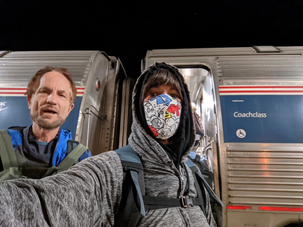 Today we are feeling thankful we made the choice to begin our RV-less journey while still on familiar turf. It gives us a chance to learn the ins and outs of navigation and transit while still being able to fully comprehend the language. Also, smart choice to have booked these tickets well in advance, considering the holiday travel season has begun. Of note, we are required to wear masks the entire 16 hours of the trip.