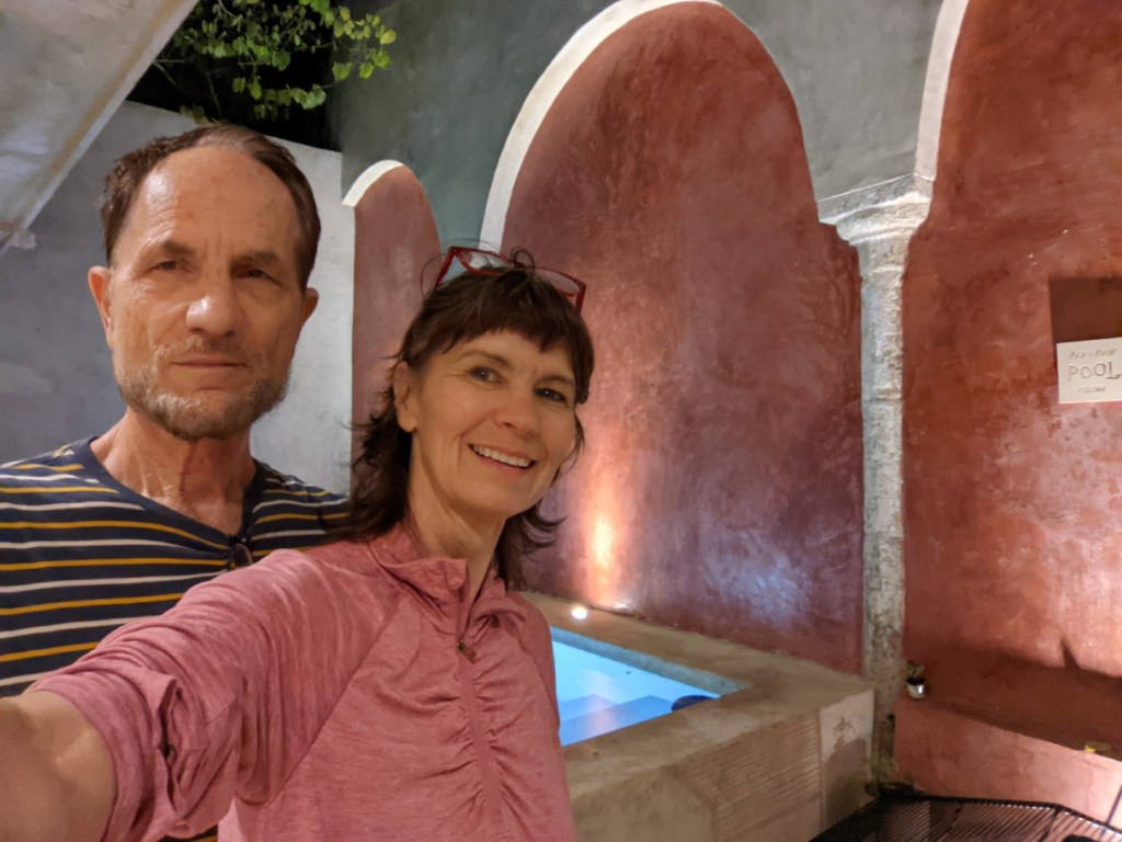 The spot where we were waiting had outlets for charging our devices, and there was a free WiFi signal. So we were relatively comfortable; but meanwhile we were struggling to figure out our water purification system. With a sincere desire to avoid Montezuma’s Revenge, we brought along both a water filter to remove unwanted particulates, and a Steripen to kill bacteria. But it took us a while to get the hang of the latter.