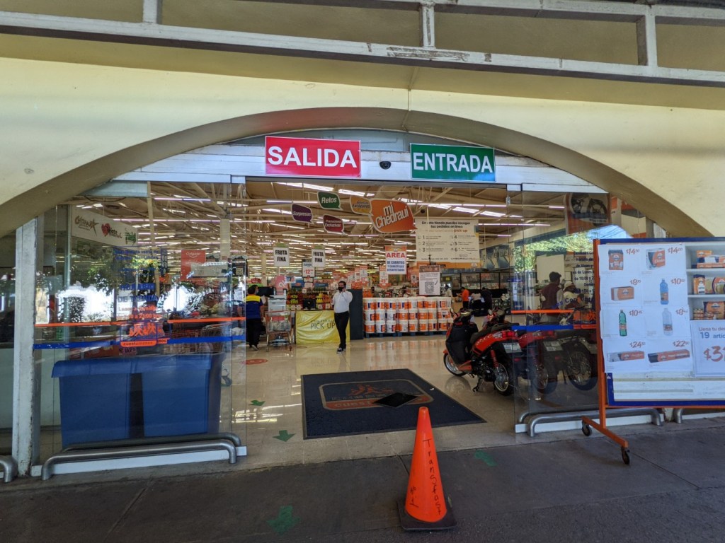 Inside the entrance are several ATMs, including one for Citibanamex. We don’t need more cash just yet, but in case we do, it’s good to know that we have nearby access to it. (For some reason, this ATM, and a couple of others not far away, didn’t come up in our online search.) The entrance to the actual shopping area is a turnstile, and before you can pass through it, you must have your temperature taken, and have hand sanitizer applied. This is standard practice in establishments all over town.