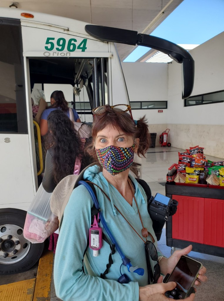 The announcements for departures in the station were in Spanish only, so we really had to be alert and ask around to make sure we didn’t miss our bus. When we got on, the seating was catch as catch can, but we found two good ones together and settled back for a fairly comfortable ride — the vehicle was even equipped with a toilet.