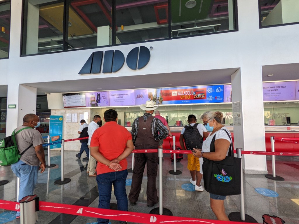 The fare was 84 pesos (about 4 dollars) each, and there was about a 20 minute wait in line. Having paid, we were given a plastic card with a balance on it, and our initial understanding was that we’d had to overpay a little because tickets were handled only by issuing cards, which were sold only in round increments. But we soon realized that the card was not the ticket, but a sort of “frequent bus-er” pass with a 14 peso bonus on it.