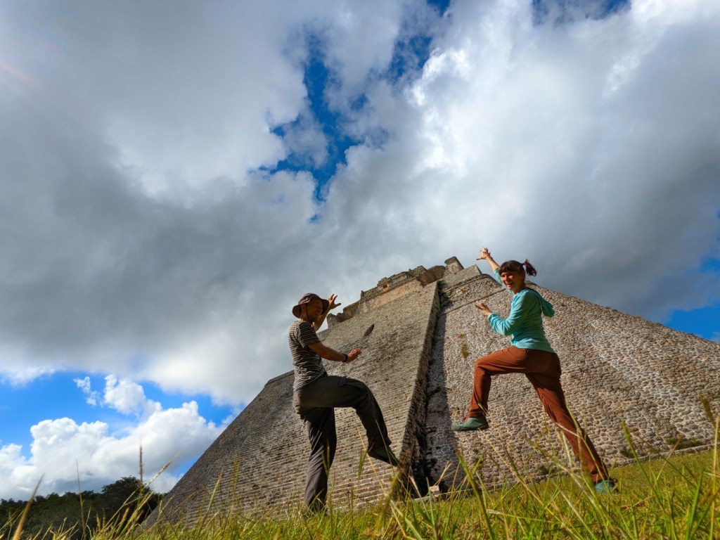 So then it was down the path and around a bend, and suddenly, we were face to face with one of the most whap-in-the-face sights we’d ever witnessed: the so-called Pyramid Of The Magician, the tallest and most iconic of the structures here. It’s the one that everybody has to get their picture taken in front of. And for us, just standing in front of it wasn’t quite enough.