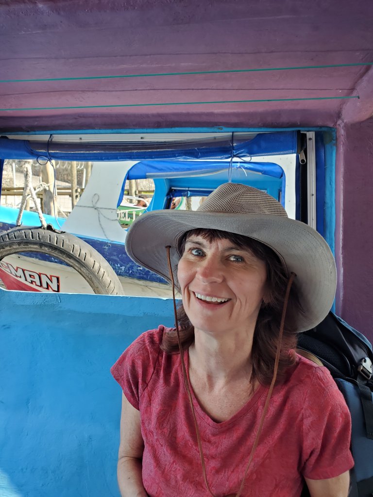 During our wait, we watched the boats pull into and out of the dock, negotiating tight squeezes and turns with amazing skill. The same can be said of the tuk-tuks, which gathered there to pick up passengers off the boats. And some of the drivers looked not even old enough to shave. Near us were several large plastic jugs filled with gasoline, which the drivers used to fuel the tuk-tuks. They did so by inserting a hose in the jug, and starting suction orally. Also while we were waiting, a dog approached us and dropped a ball at our feet, expecting us to play. Except the “ball” was actually an avocado.