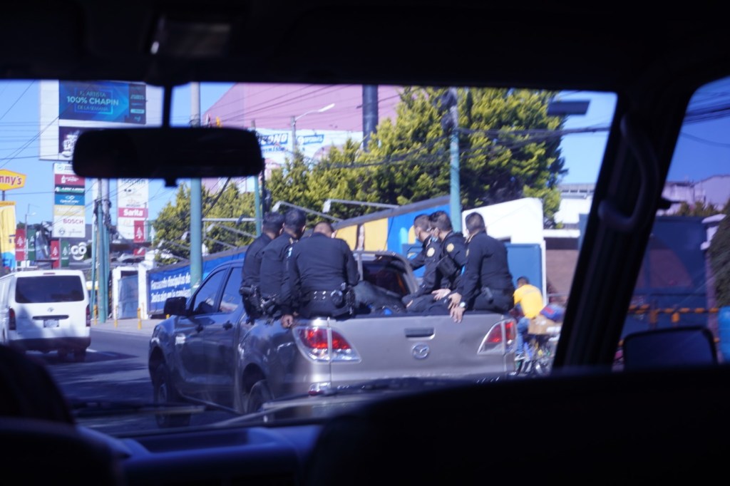 Anyway, when she heard of our travel plans, she decided to arrange a ride for us with a collectivo driver she was acquainted with, a fellow named Melvin. And when we landed and were able to get online, we saw that there was a message from her saying that he would be there at the airport to get us at 8:00 — which was already half an hour in the past. And we still had to get some Guatemalan currency, or we would have no way to pay for the ride, or for many other things. So we were afraid that we would miss him, and still be at square one.