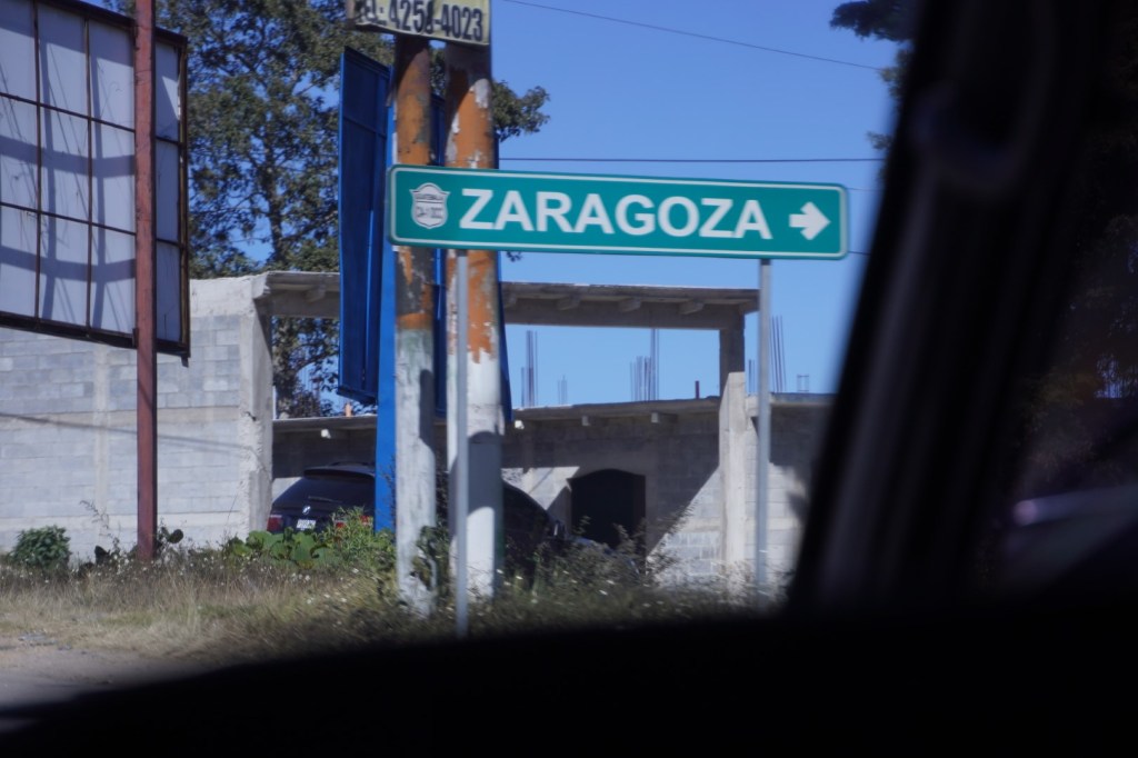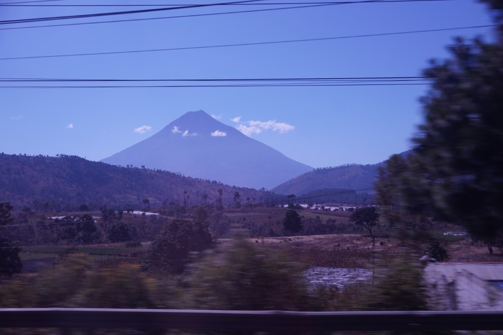 Then we loaded our bags into Melvin’s dented van, and we were off. First there was a considerable amount of time getting out of Guatemala City itself, and it was enough to convince us that we don’t really want to spend much time there. Then it was out in the country, with a narrow road that tied itself in knots through hills, hills and more hills. When we got out into the country, we got our first glimpse of the “real” Guatemala, with women in traditional colorful clothing hand-washing their laundry and carrying it in baskets on their heads. One town we passed through was called Zaragoza; and it seemed to be a place where there were far more police than crime, as the police just seemed to be using their time to arbitrarily pull people over for questioning. Fortunately, we slipped through the cracks.