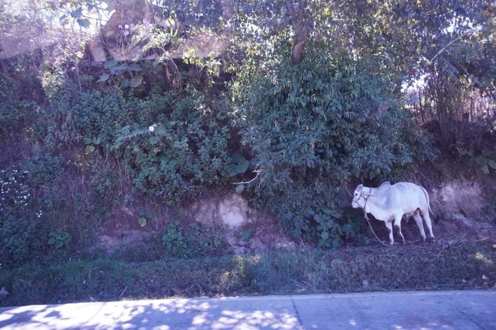 About halfway to our destination, Melvin stopped at a little roadside diner in the middle of nowhere for a lunch and bathroom break. We didn’t really need the former, as we always try to pack food. But the latter was somewhat welcome. Melvin himself sat at a table, ordered a rather tasty-looking lunch of refried beans, fried plantains, and something made with eggs, and consumed it leisurely. Meanwhile, we were locked out of the van.