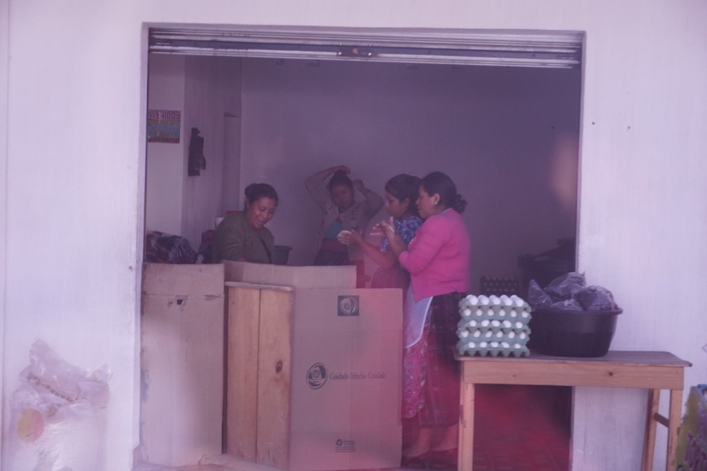 We did avail ourselves of the restrooms, and then a couple of boys who were part of the family that ran the restaurant, approached us and began saying something to us about the bathrooms. We finally had to tell them that we couldn’t understand what they were saying, and we went outside. They followed us, still trying to communicate something; which, as we at last understood, was that there was a charge for using the restroom: 5 quetzales (about 65 cents) each.