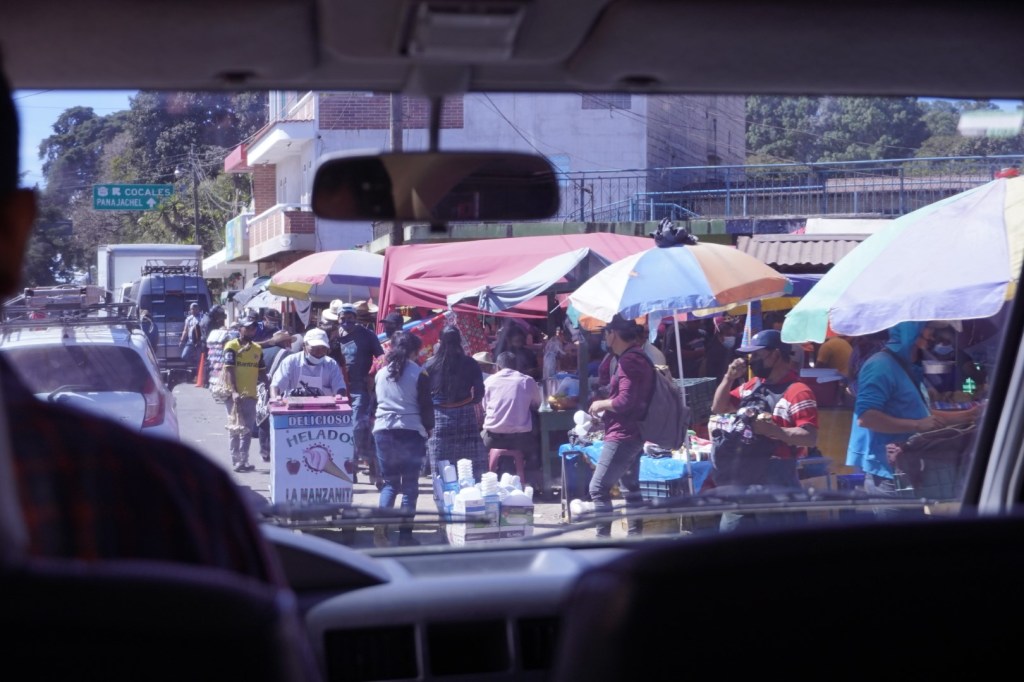 Melvin made one more stop before we reached our destination, at one of the first overlooks above Lake Atitlán. Ostensibly, this was so we could admire the view and take photos. But we’ve no doubt that the real motive was so the vendors stationed there could hawk their trinkets at us. He surely has an arrangement with them, just as he does with the diner.