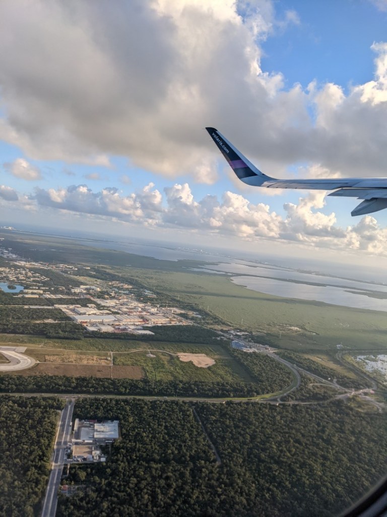 The first problem was just getting to the airport. As we’ve mentioned before, Uber and Lyft are not an option in Cancun. And since we needed to be at the airport to check in at about 4:30 (yes, that’s in the morning), taking a bus was really out of the question — the best we could do was walk the two and a half miles to the bus terminal (starting about 3:00) and catch the first bus of the day at 4:30, arriving at the airport at least half an hour later than we wanted to. There are several shuttle services that pick you up at hotels, but when it comes to getting transport from a private residence, the odds get really dicey.