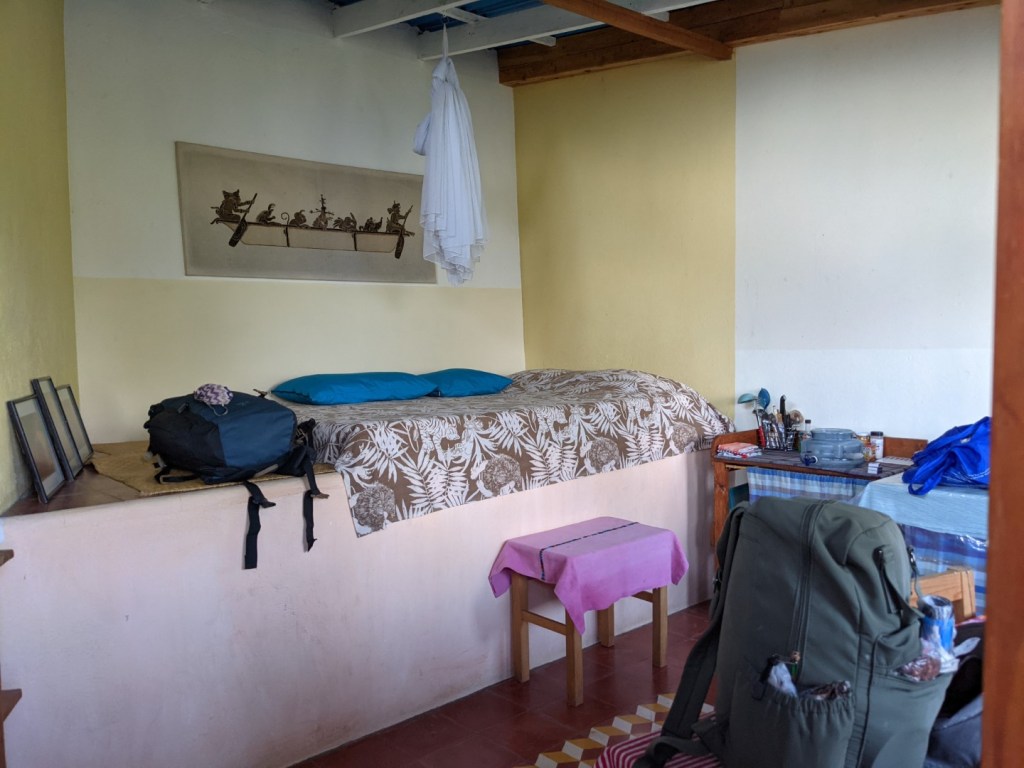 Thilda came with her own dog, and led us up the hill to our quarters. Up and up the hill. A very steep hill. Loaded down with our bags. It was a very good workout, and by the time we got into our room, we were glad to be “home” after a very long day.