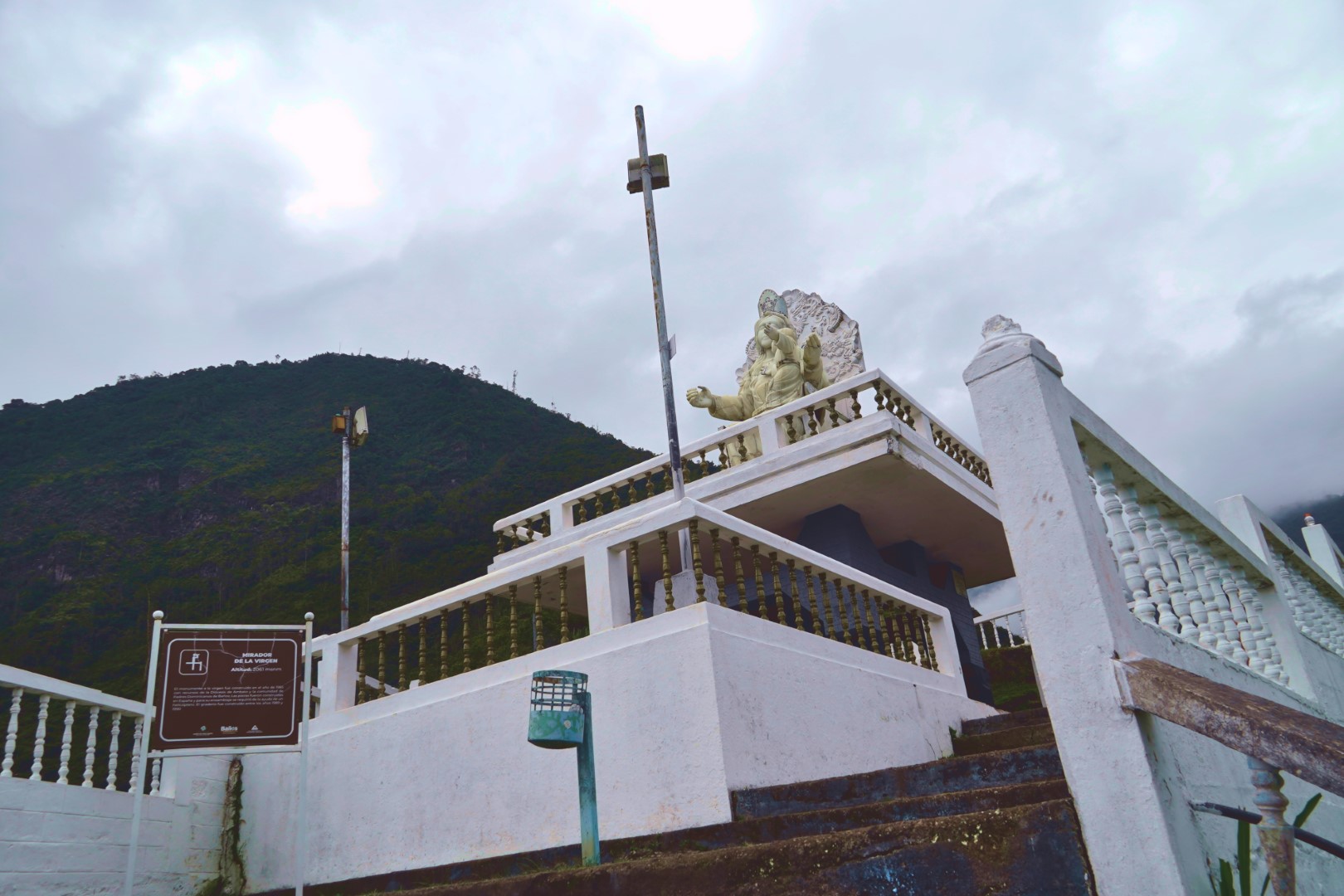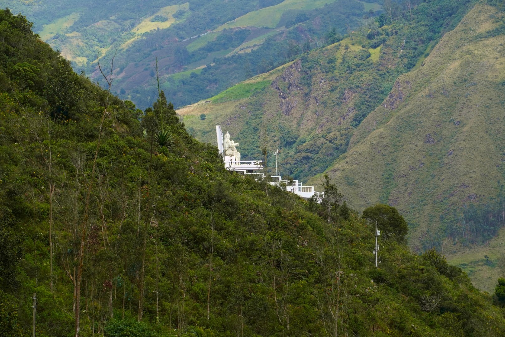 Our hike took us just past the Mirador de la Virgen (Virgin Lookout), a religious shrine, part of which came from Spain and was lifted into place by a helicopter. It was intended to be visible and inspiring from anywhere in the city, a sacred icon peering down on you from the mountainside. But in fact, while it can be seen from all over town, you can’t make out any details; and if you didn’t know what it was, you might think it was just a lemonade stand or something.