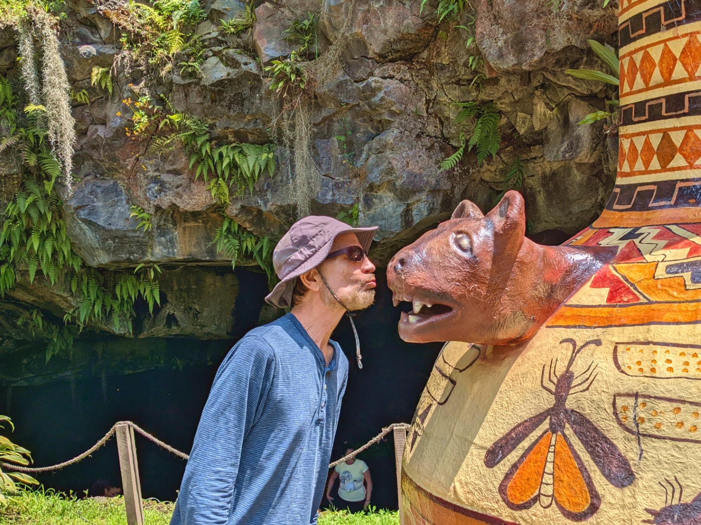 After resting up a bit, we continued ambling about town until we happened upon a cave. Well, it was a rather small cave, and there was of course an admission charge, but it was a cave nonetheless. It was enhanced by a light show, and a recording of cave-ish sound effects and First People music. We had a hard time deciding if the effect was cheesy or appropriately moody.