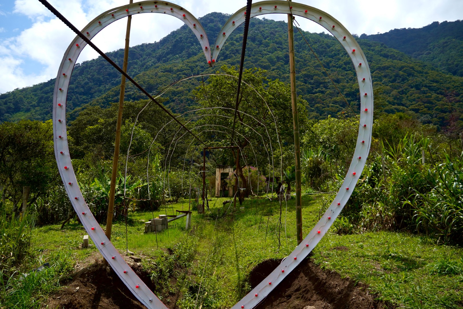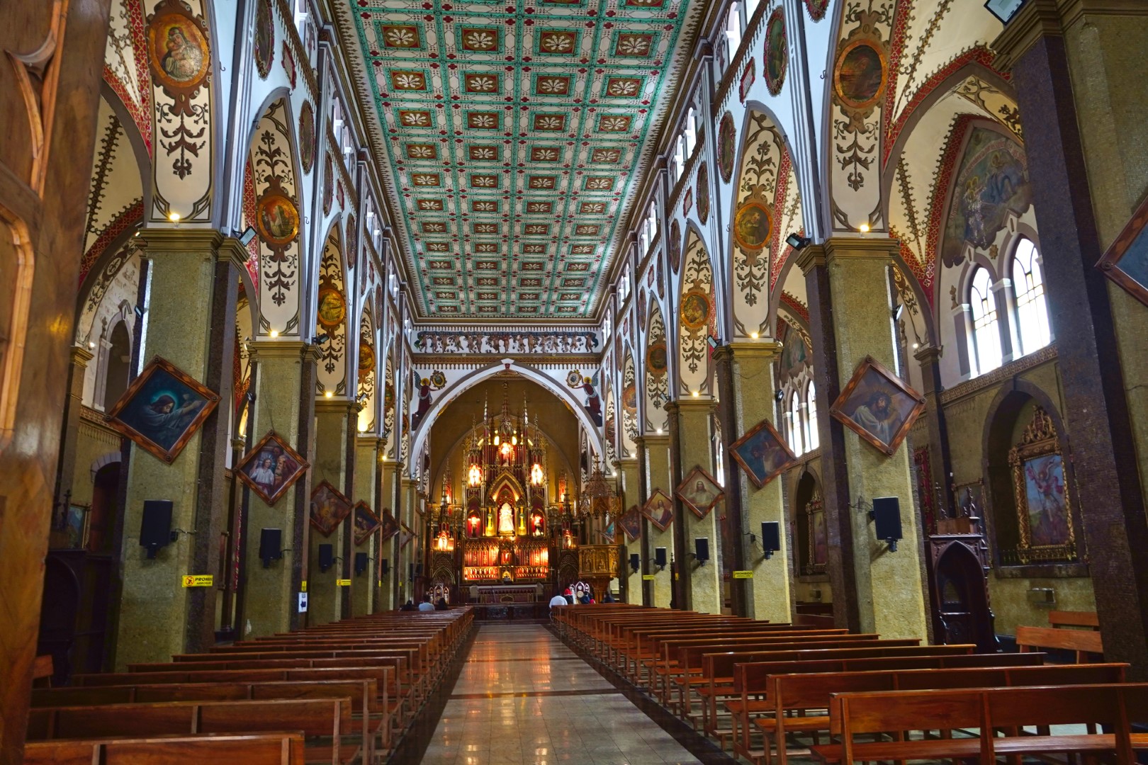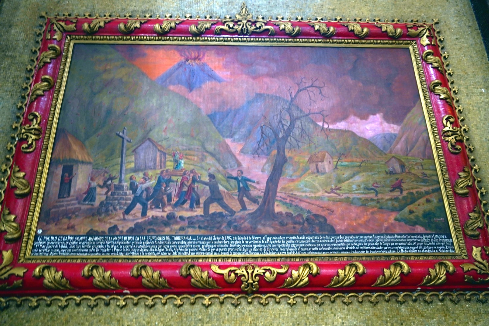 So it was back to the local waterfall and the town square with all its bustle, including candy makers pulling some of the famous taffy. And since it was right there and rather conspicuous, we decided to duck into La Basilica de Nuestra Senora del Rosario de Agua Santa, the walls of which are adorned with murals depicting alleged miracles attributed to the Lady Of Holy Water, whoever she is. While we were inside, one couple entered with a small dog, which began yapping sonorously, rather disturbing the mood of gravitas prevailing in such a structure.