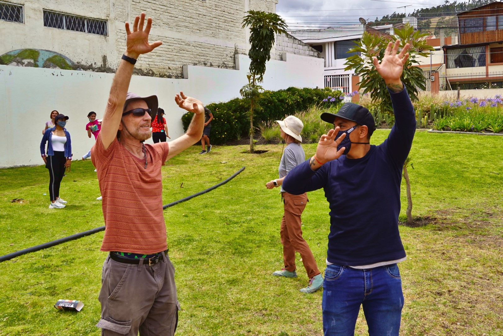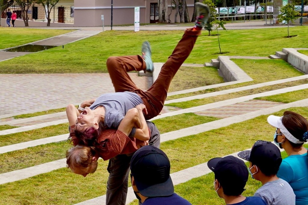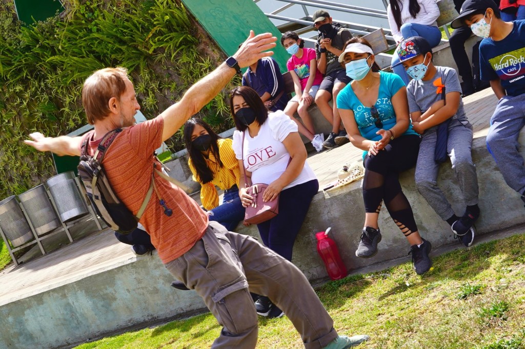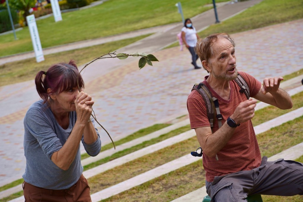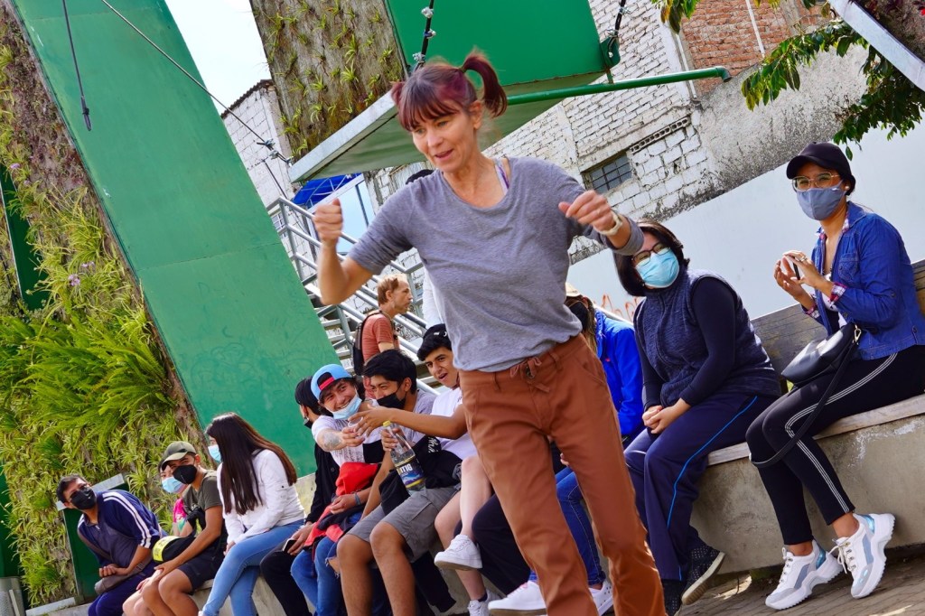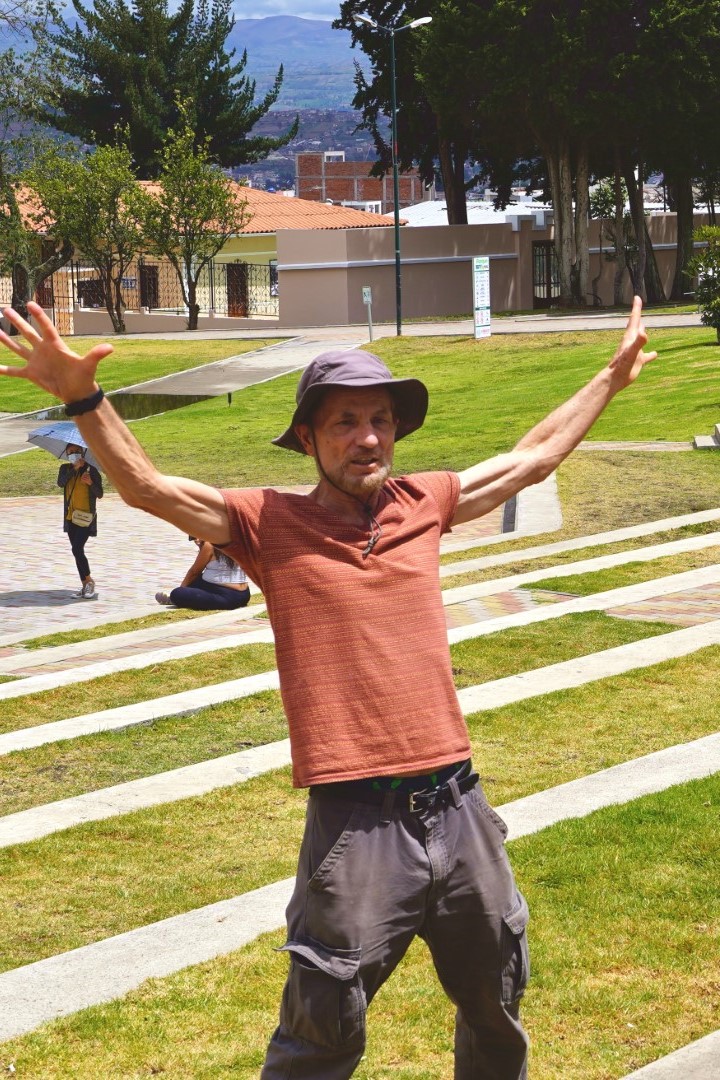 As soon as our hosts at South American Language Center had learned that we were entertainers by trade, they pitched the idea of our doing some kind of performance in conjunction with our volunteer activities teaching English. But it was one of their teachers who pushed to actually make it happen — an amiable woman named Amara. She suggested mounting an event on a Saturday in the park, with us performing a story, getting the students involved in theatre games, and — since she’d also learned that Dennis is a poet — also making poetry part of the occasion. Oh, is that all?