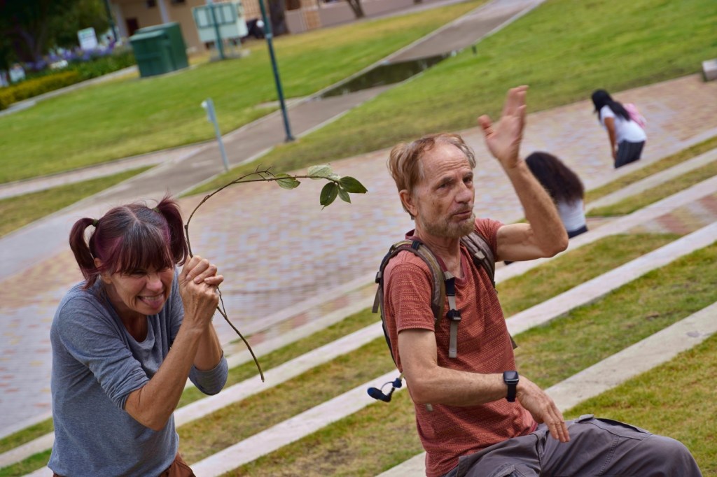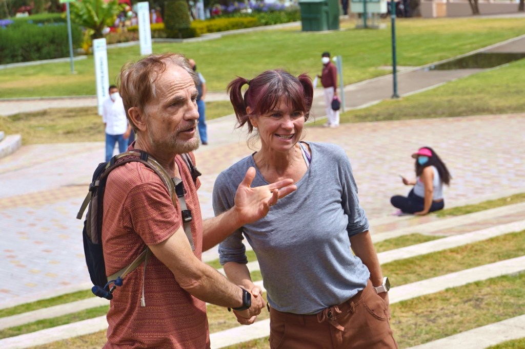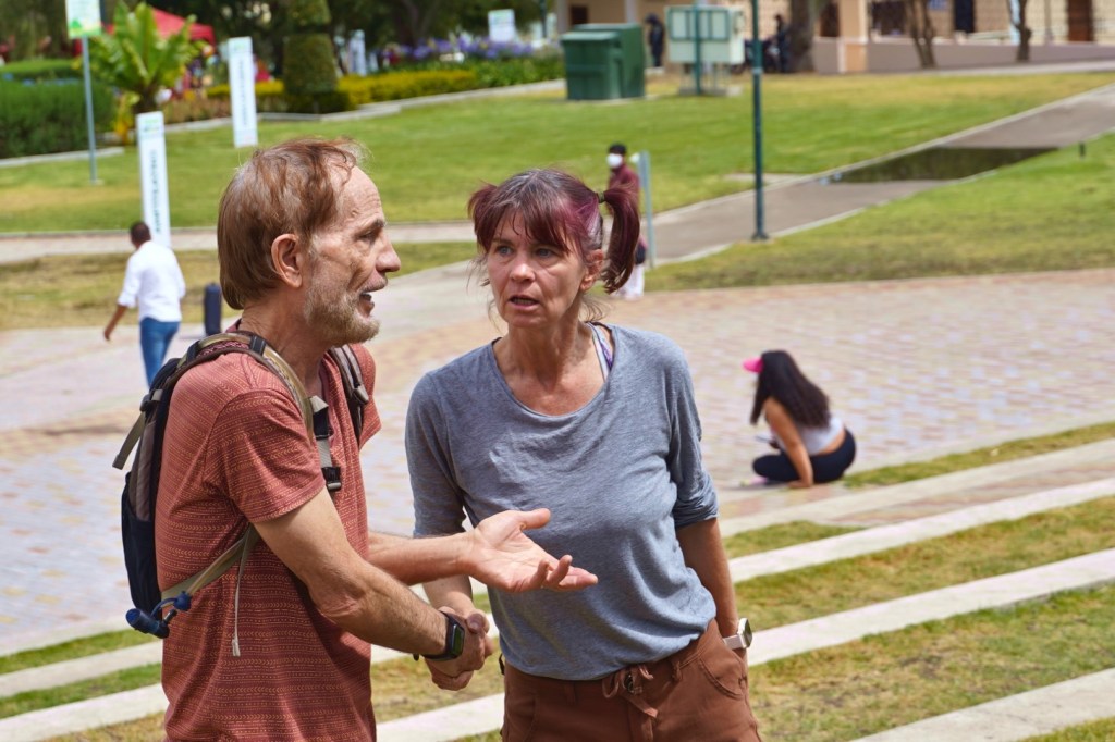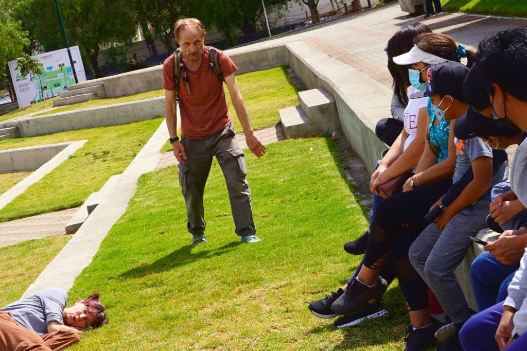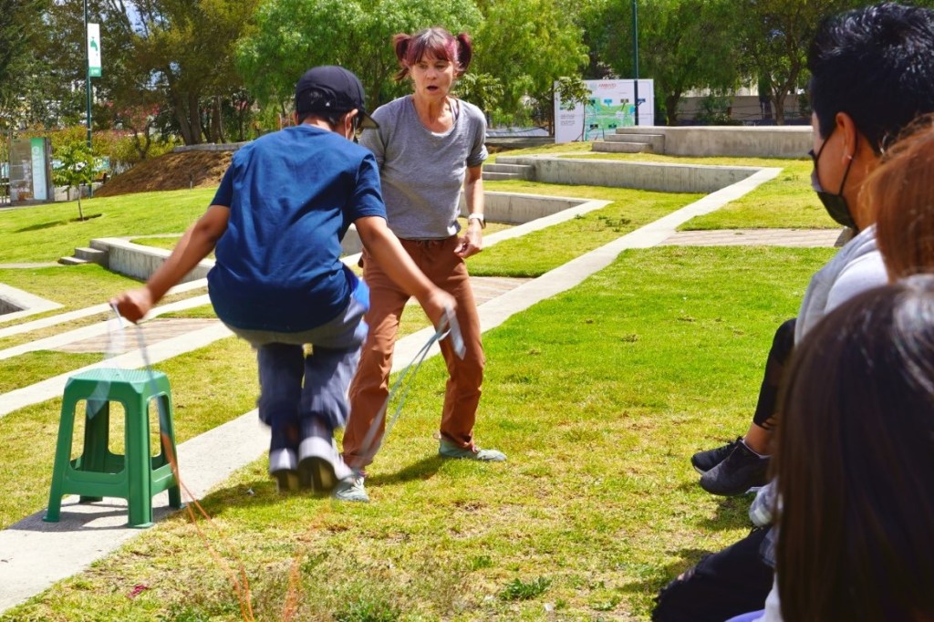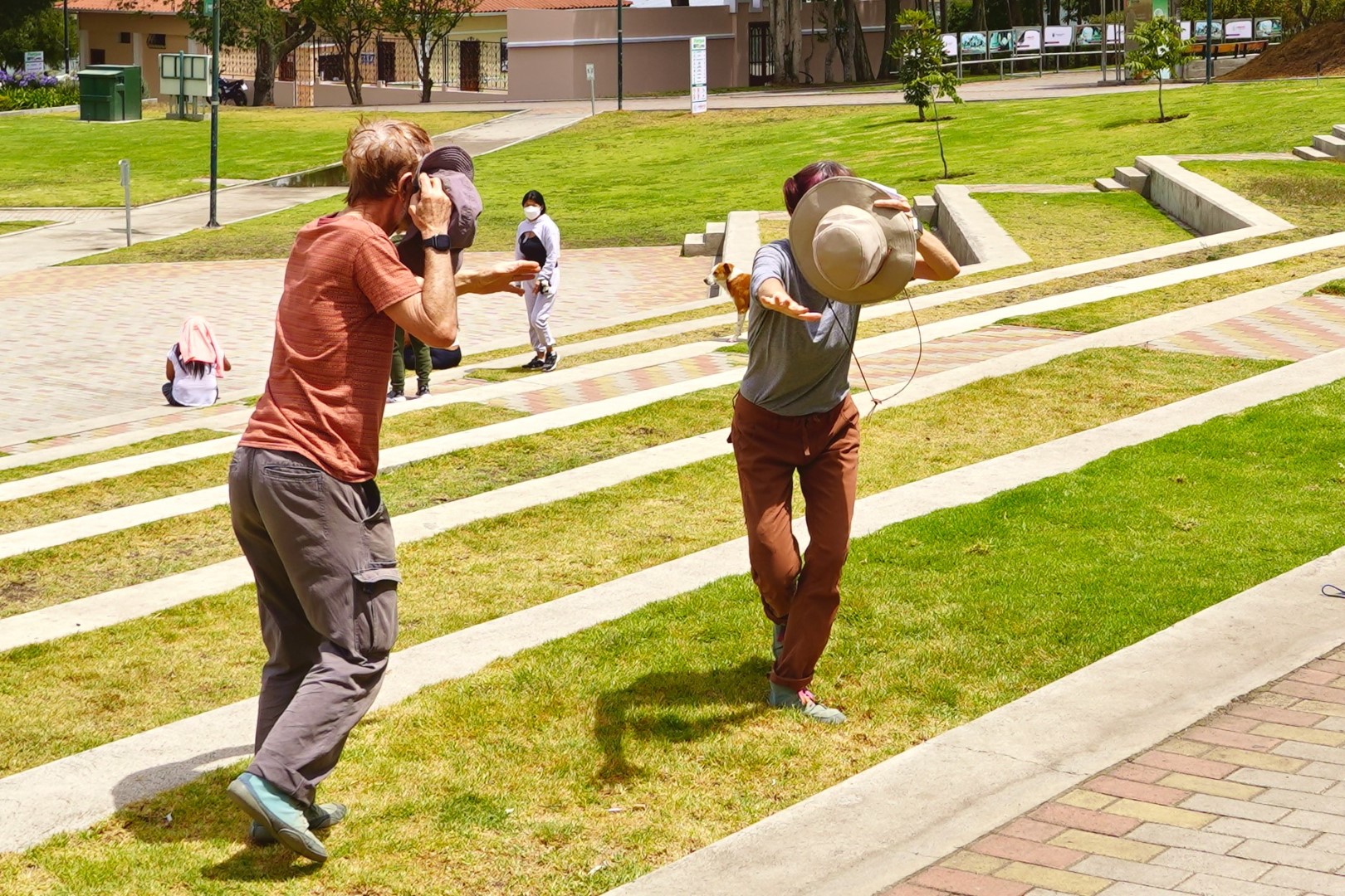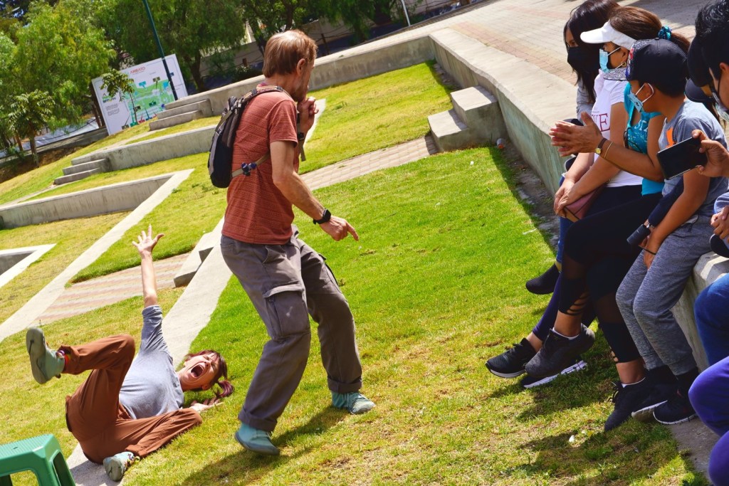 As soon as our hosts at South American Language Center had learned that we were entertainers by trade, they pitched the idea of our doing some kind of performance in conjunction with our volunteer activities teaching English. But it was one of their teachers who pushed to actually make it happen — an amiable woman named Amara. She suggested mounting an event on a Saturday in the park, with us performing a story, getting the students involved in theatre games, and — since she’d also learned that Dennis is a poet — also making poetry part of the occasion. Oh, is that all?