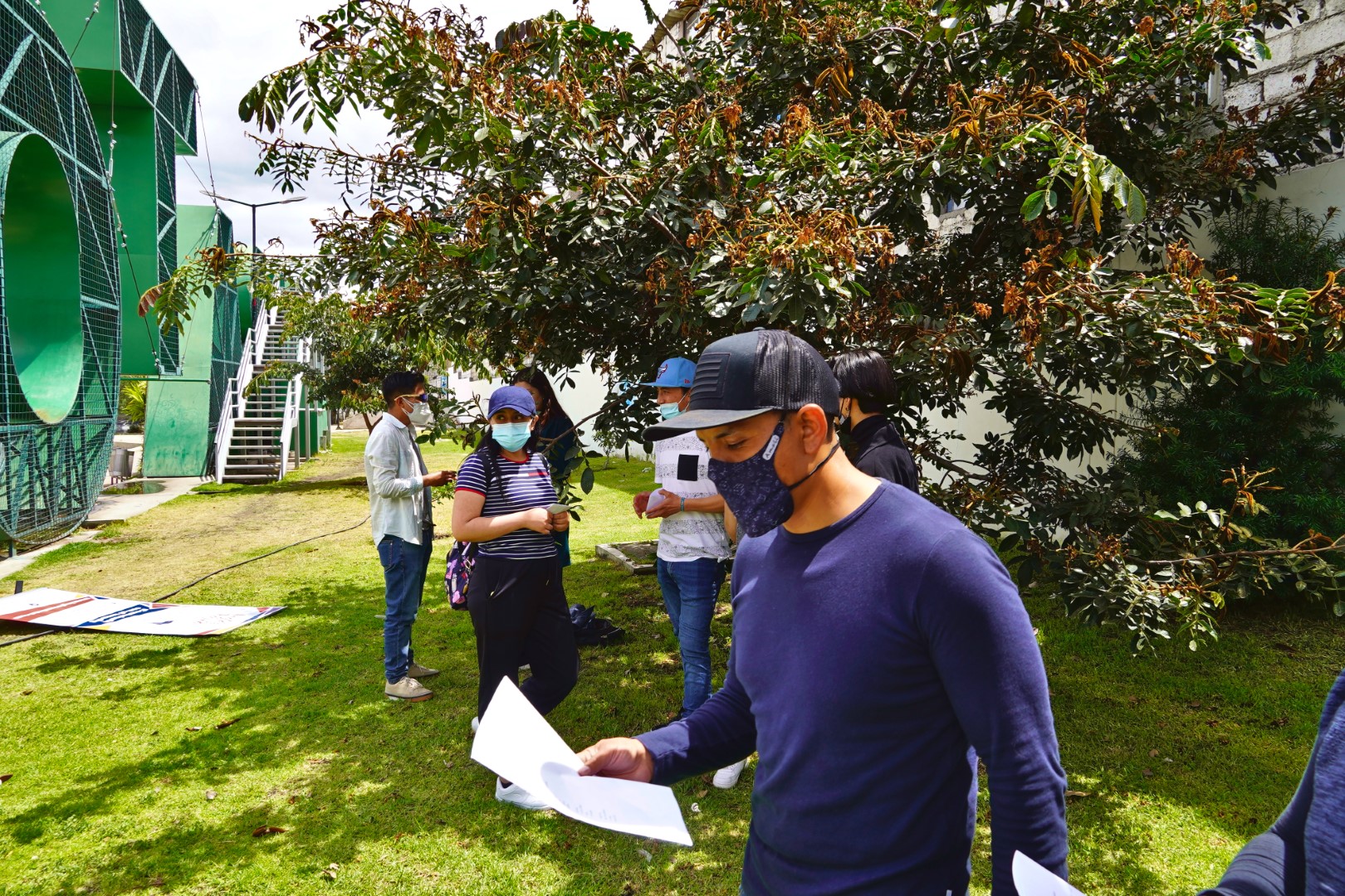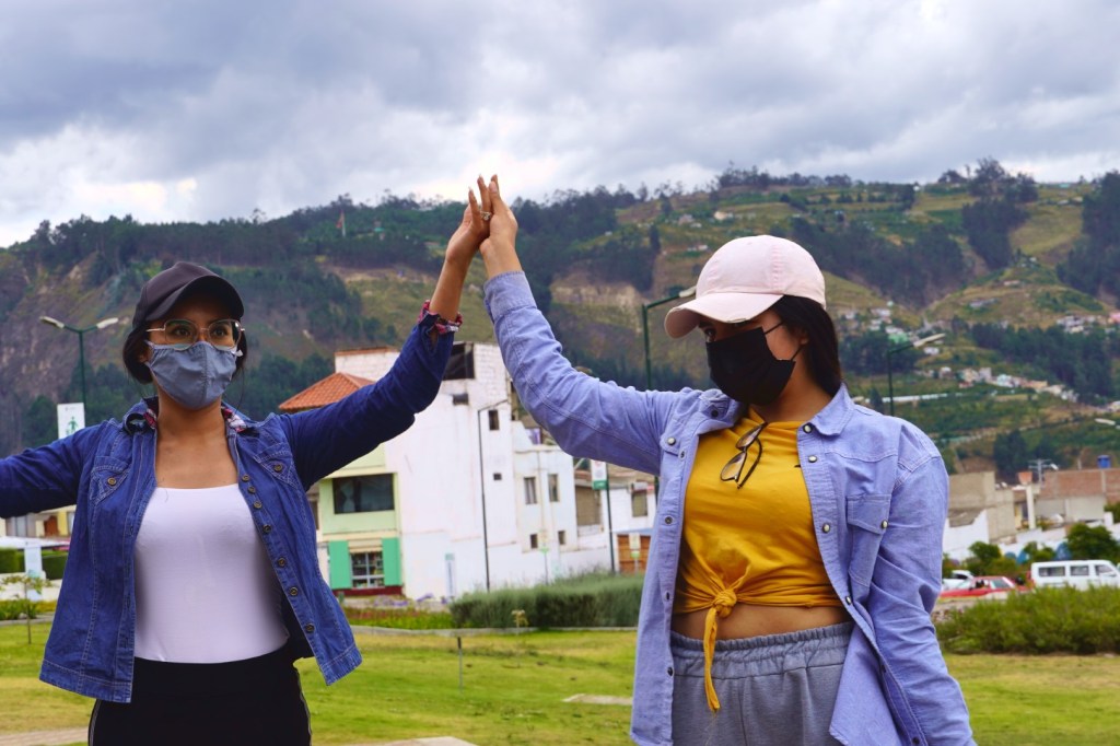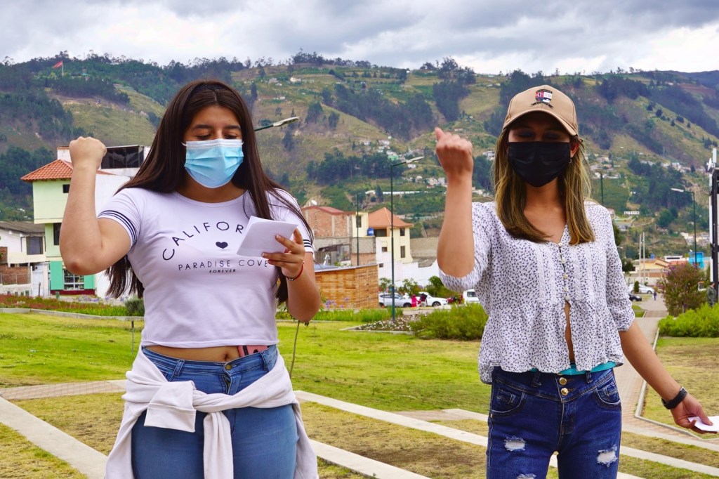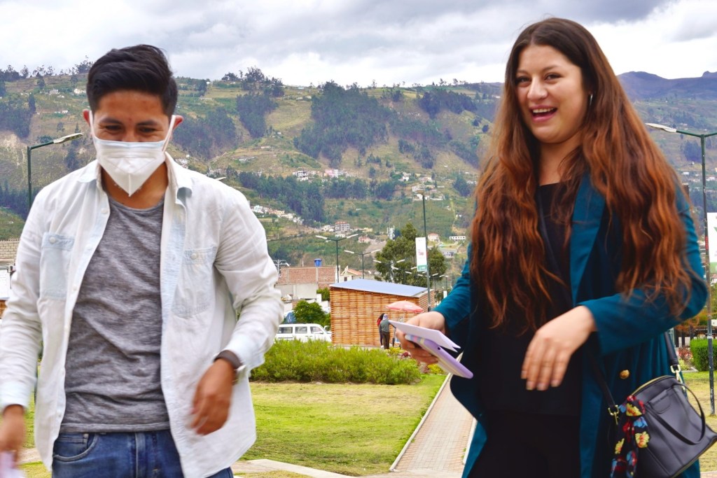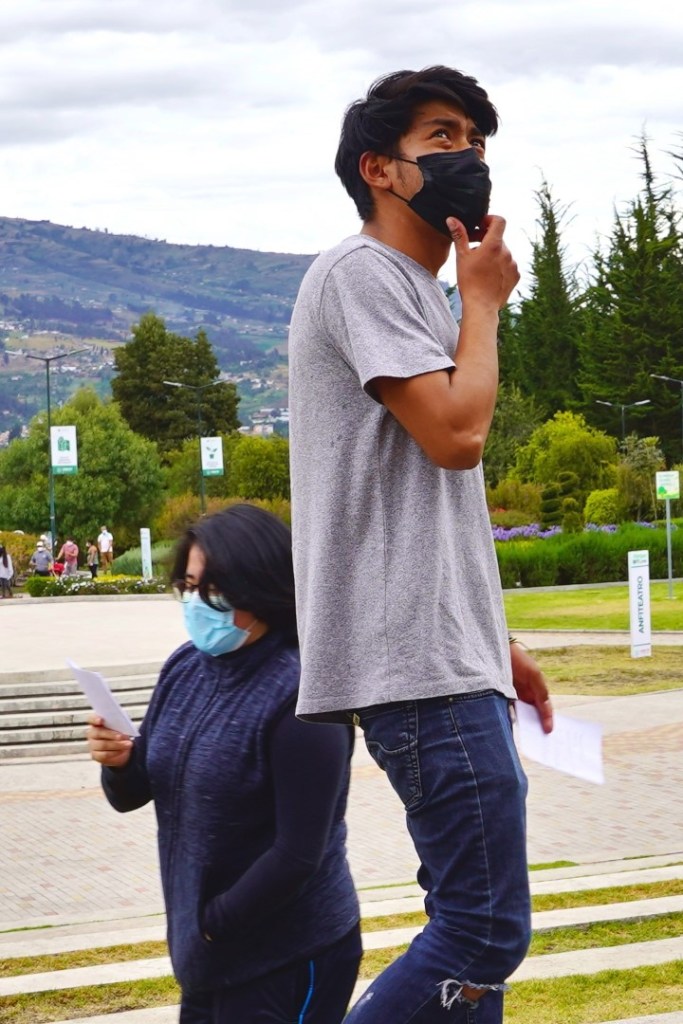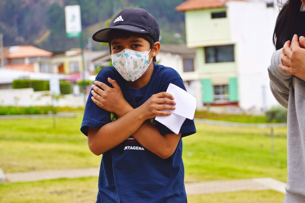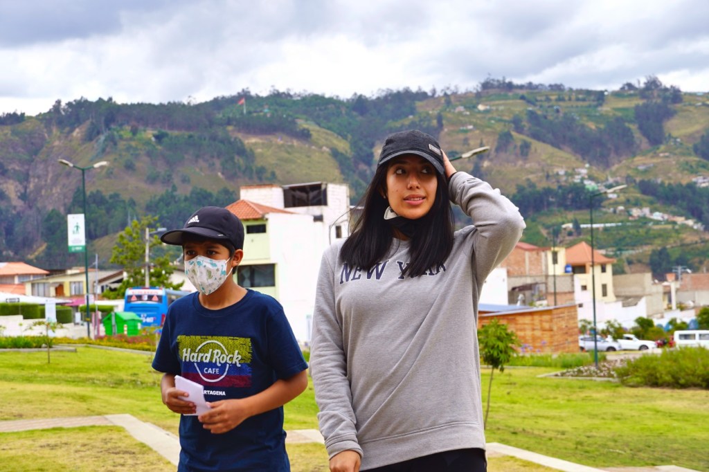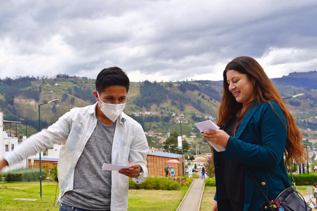 So the big day came, and we headed to the local park, Parque de las Flores, with the only props we would need: a stool borrowed from the school, a crudely homemade sign with an arrow (pointing in the direction of the racecourse the Tortoise and Hare followed), a bottle of “glue” (a.k.a. a TSA approved travel-sized bottle of sunscreen) and a jump rope. But since no jump ropes were readily available we hastily fashioned one out of our clothes line and a couple of shoelaces that we have squirreled away in our backpacks. The tree branch we figured we could find on site. There were already quite a few locals in the park, including some engaged in group activities. But we staked out what was probably the best available venue: the steps in front of the huge Ambato sign. Certainly not ideal, but also certainly not the worst place we’d ever performed.