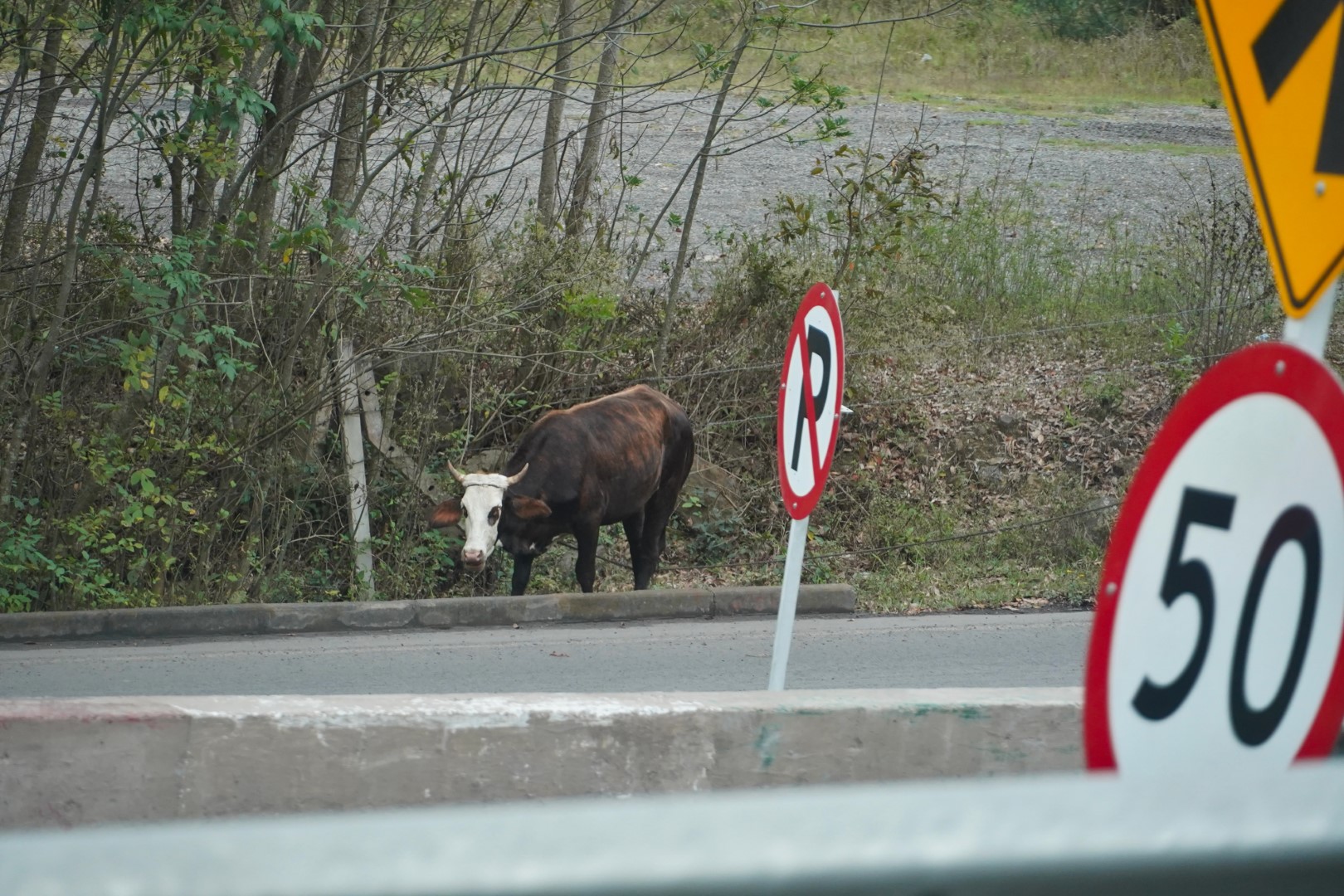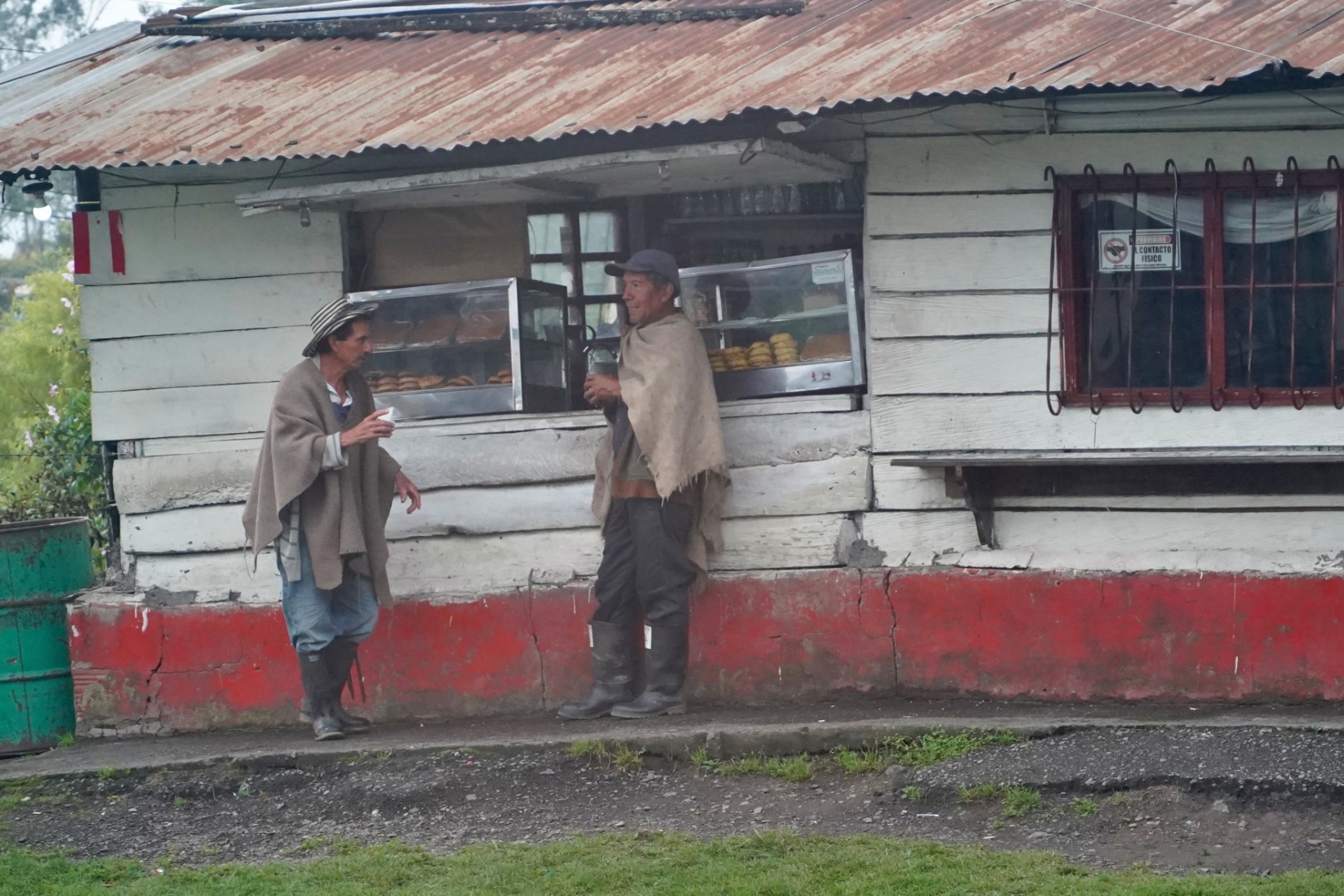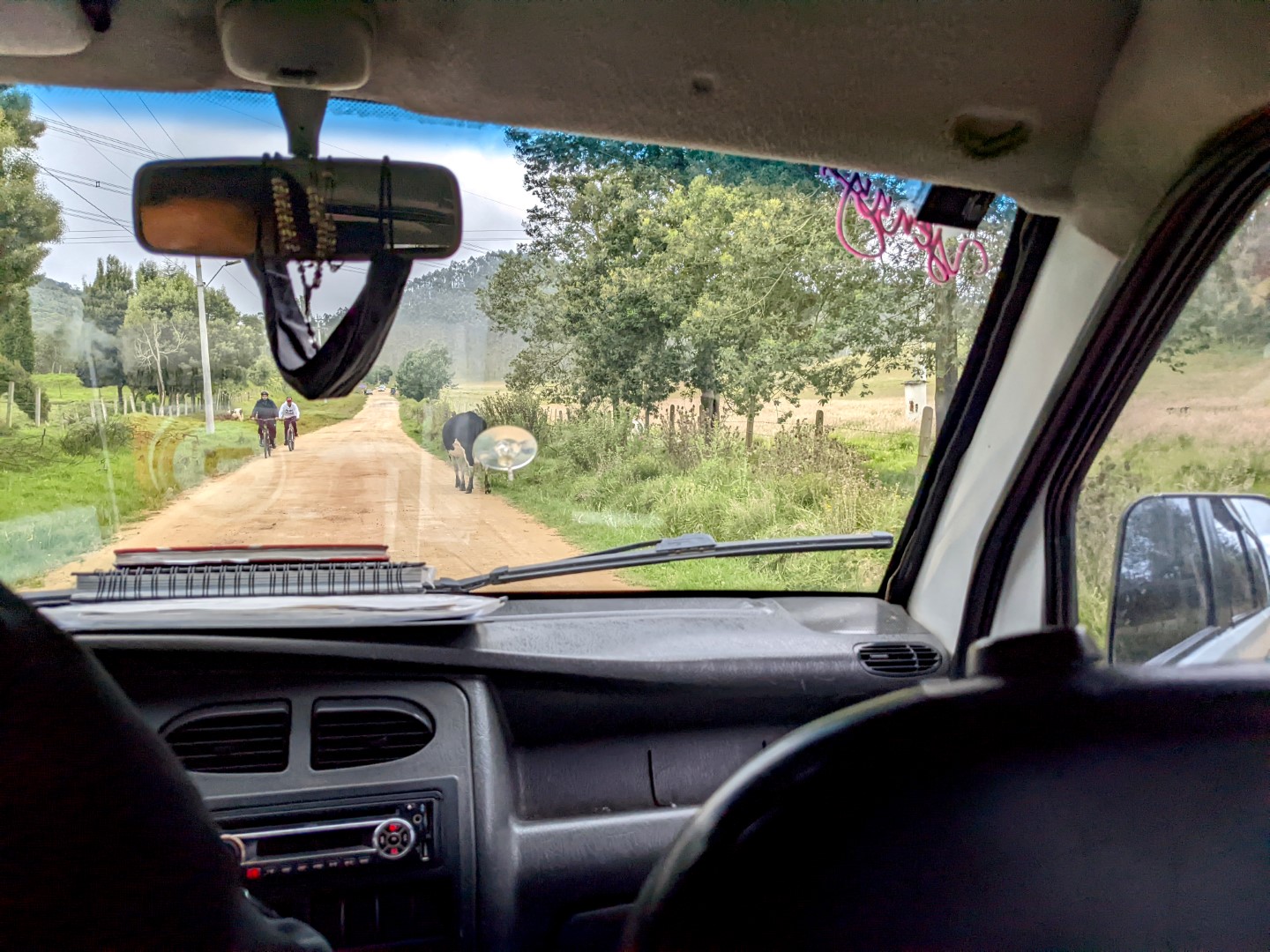 We knew that in Soacha we were supposed to hop on a shuttle van that took us to Chicaque Natural Park ; it apparently runs only on weekends, about once an hour. It seems we’d just missed one, and needed to wait for the next one. But after we’d walked around the block and back, we saw a van parked, and the driver, waiting outside, called out to us. He had been alerted to our arrival and was on the lookout for us. So then he took us on the half-hour drive to the park.