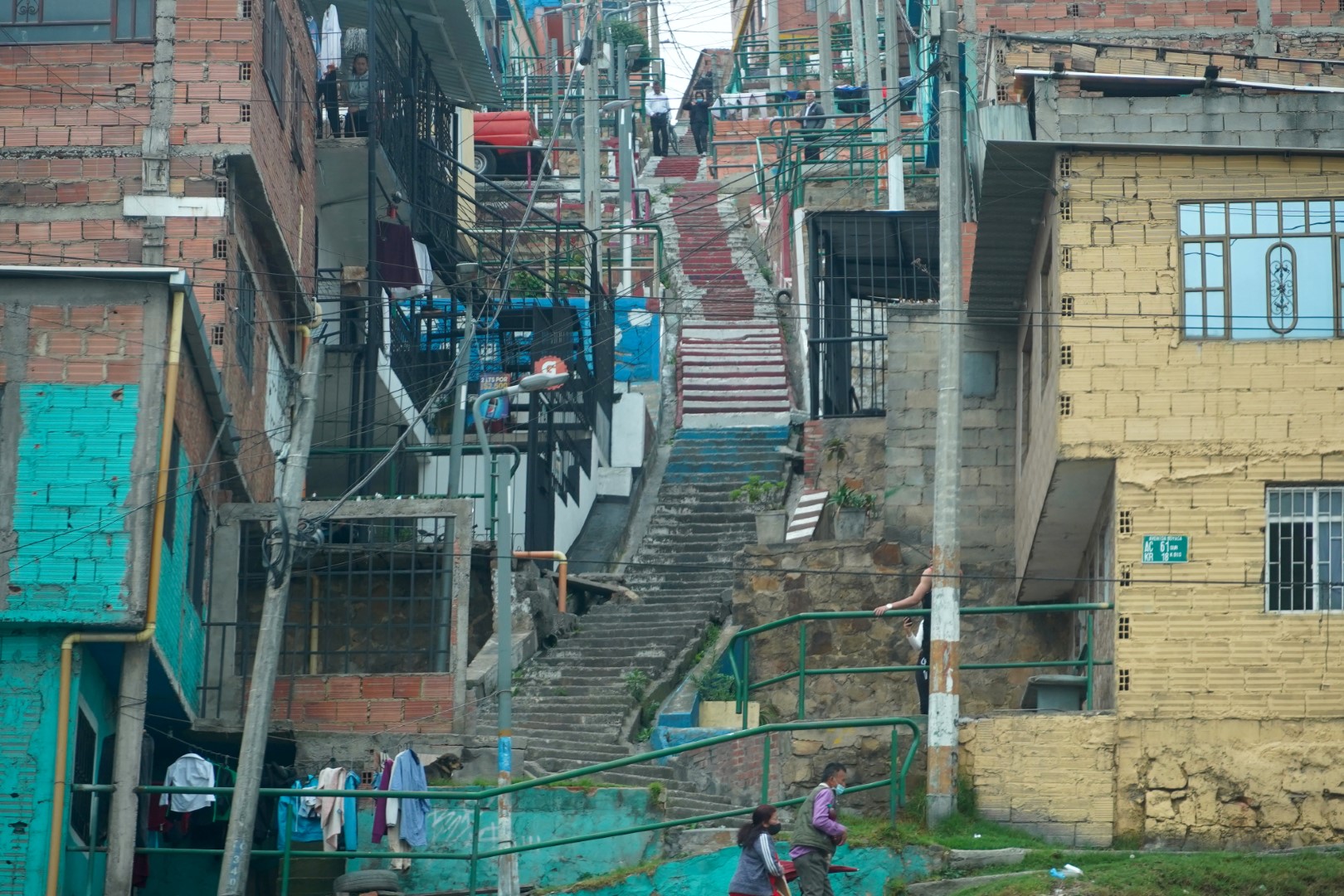 The first step was to get to a station of the TransMilenio, the light right system. The station we needed was only about half a mile away, so we could have walked. But since it was beginning to rain, and since we were already a bit behind schedule, we opted for a cab. (The fare was about 5 dollars, which would have been decent in the U.S., but was really quite steep for Colombia.) Then, after some confusion about how to buy and use the tickets, and which track to get on — we initially went to the wrong one — we managed to catch the train headed to the suburb of Soacha.