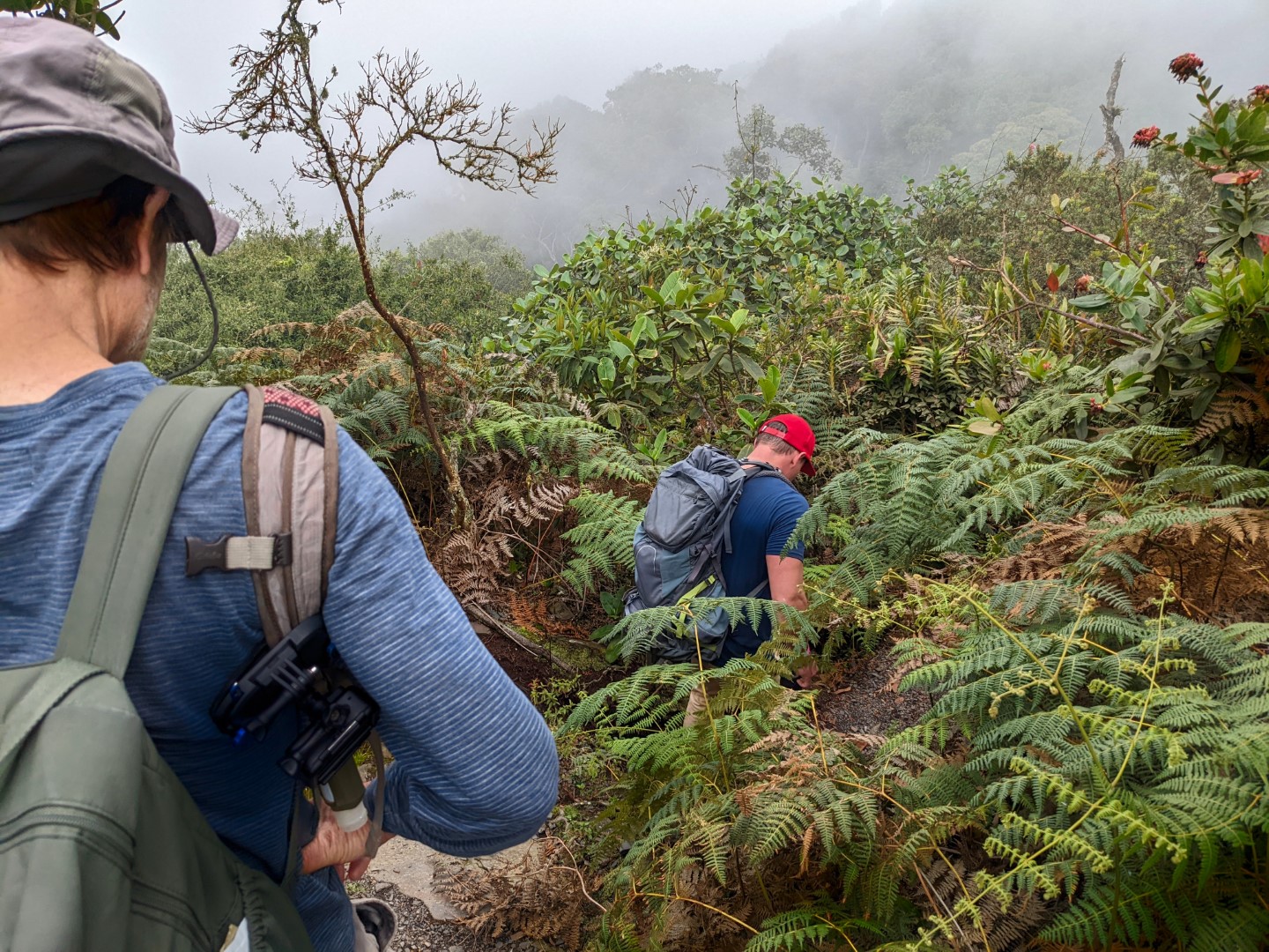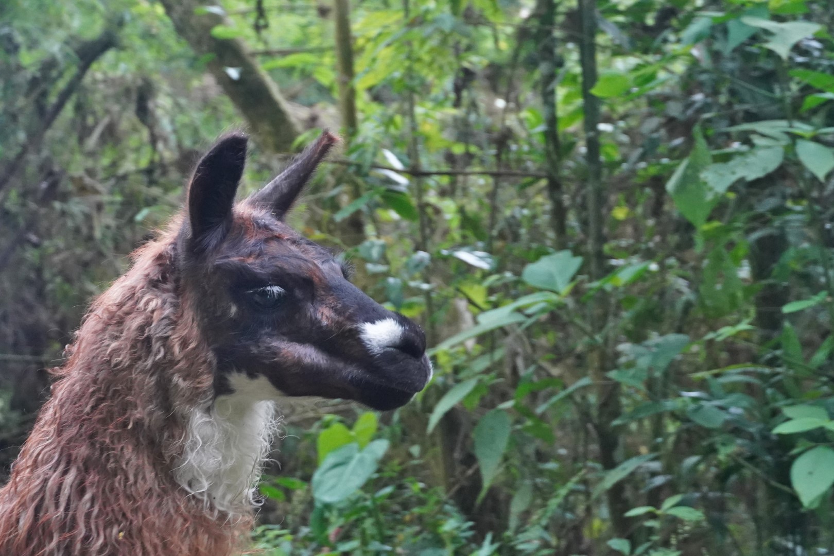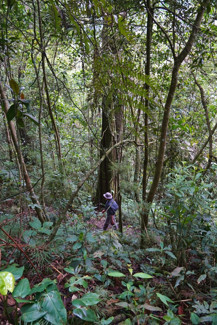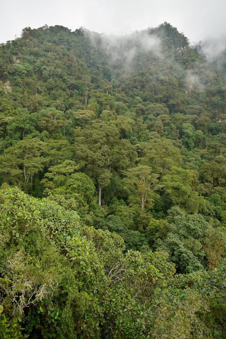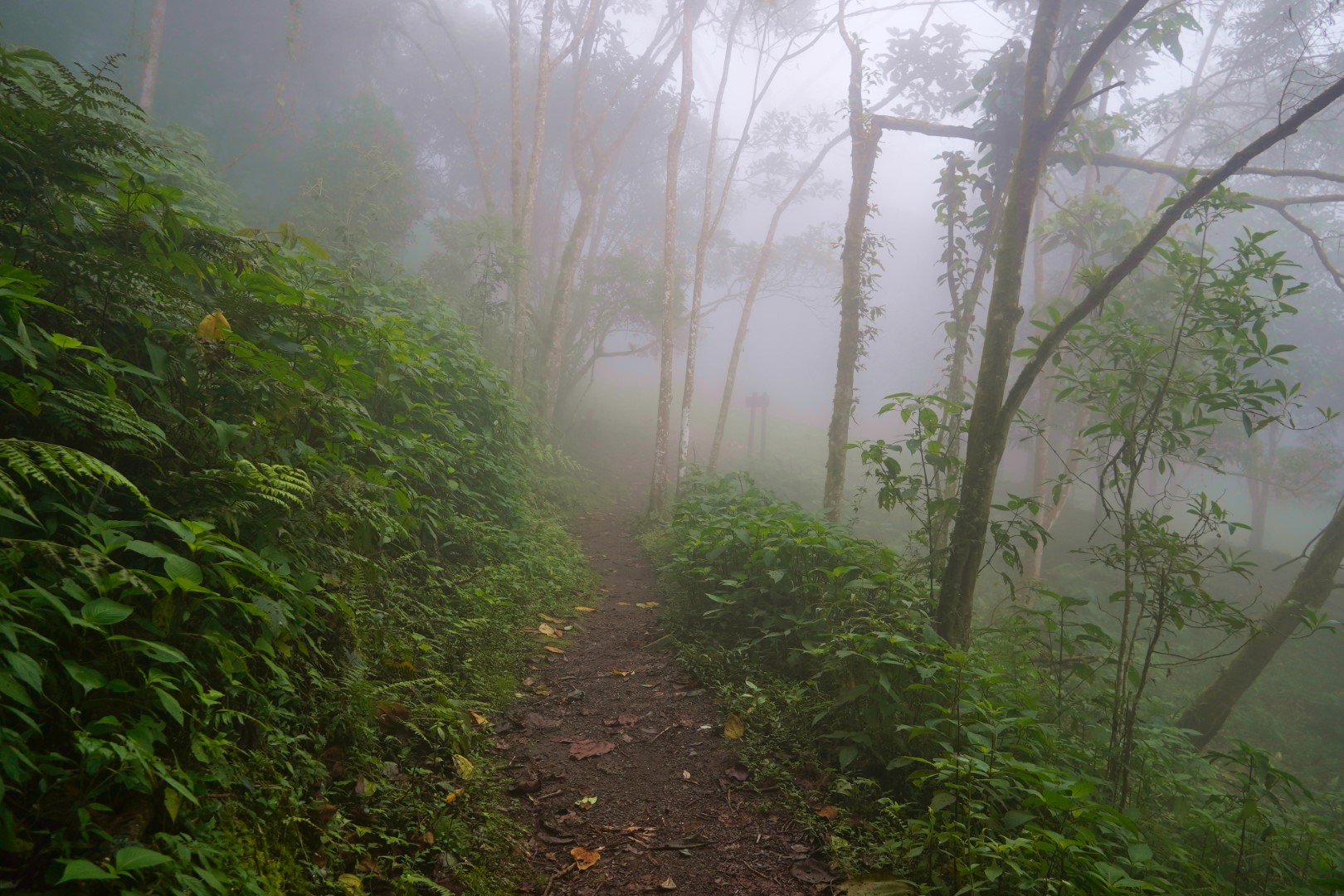 With our first week of volunteering concluded at UBHA school, we were free to spend a 3-day weekend hiking through the stupendous Chicaque Natural Park. On Saturday morning, we set out on a hike to visit one of its landmarks: Pico (the peak), which on a clear day offers a sweeping view of the valley below. (Pico is also short for Pico del Aguila, meaning “eagle’s beak”, which is what this formation resembles.) This wasn’t a particularly clear day, and in fact was either very foggy/ cloudy (hard to tell the difference at this altitude) or rainy most of the day — indeed, it never dried up much during our entire stay in the park, and our shoes stayed wet pretty much the whole time. But even on this mostly rainy/cloudy/foggy day we still managed to sneak in some pretty good peeks form the peak of the beak.