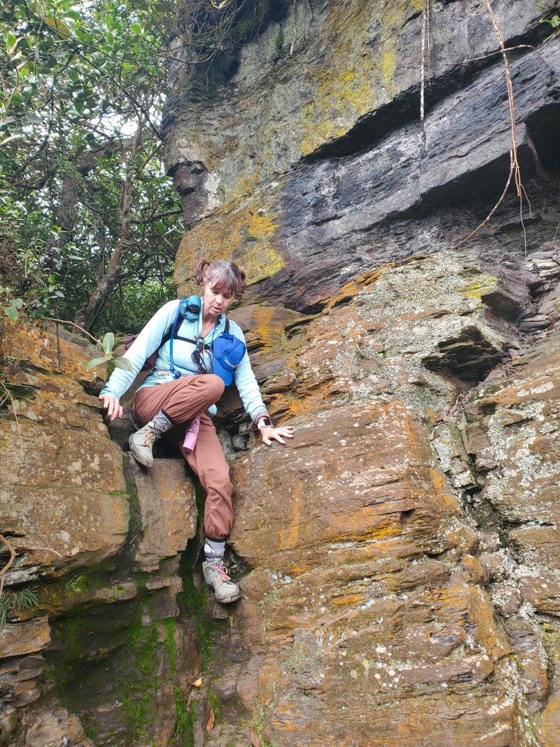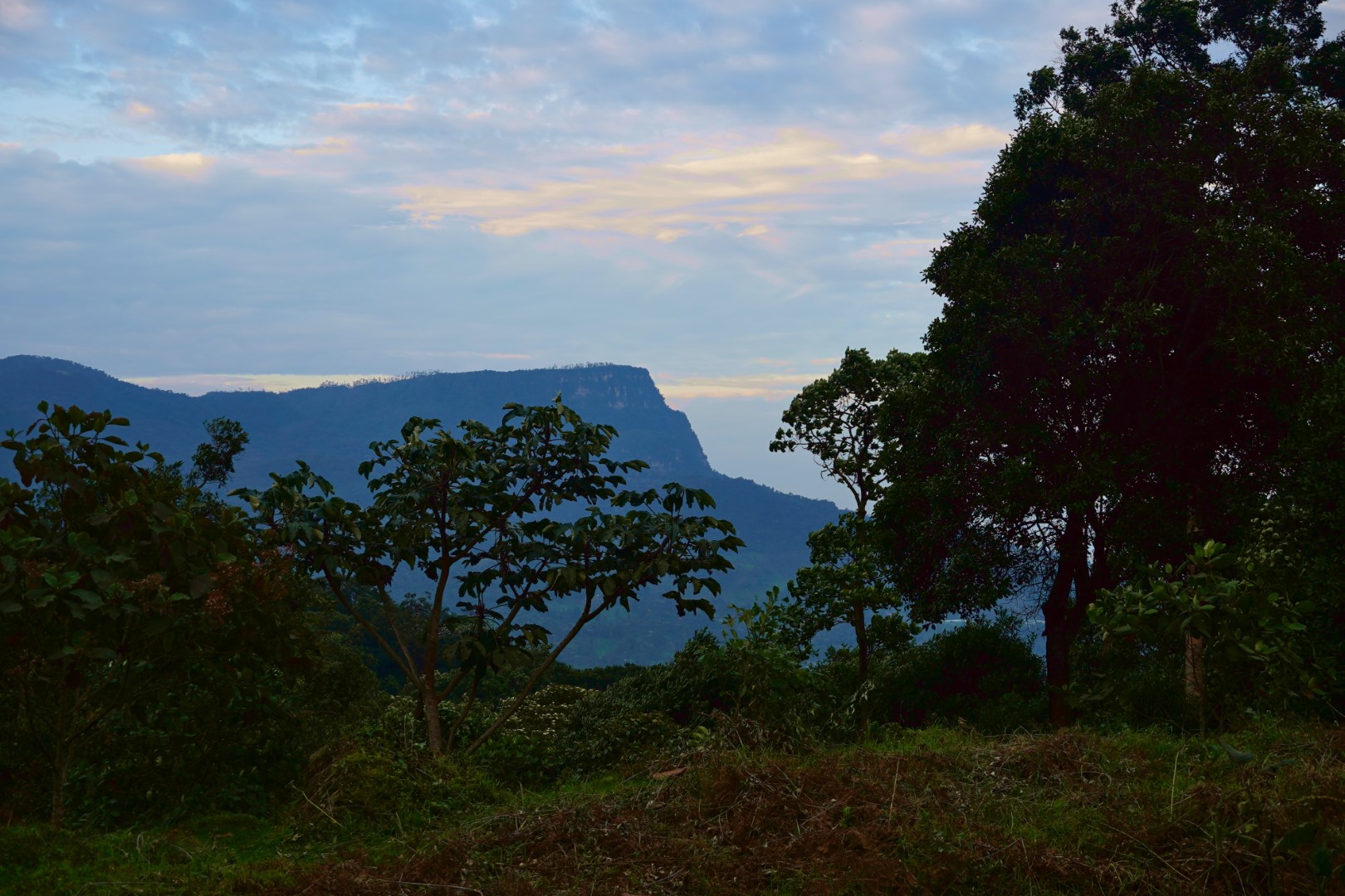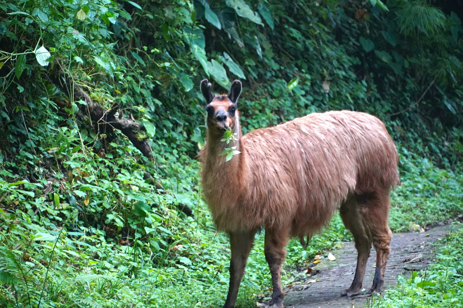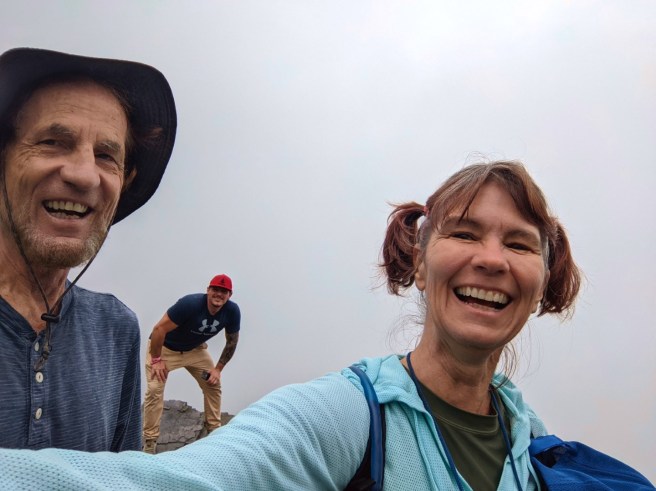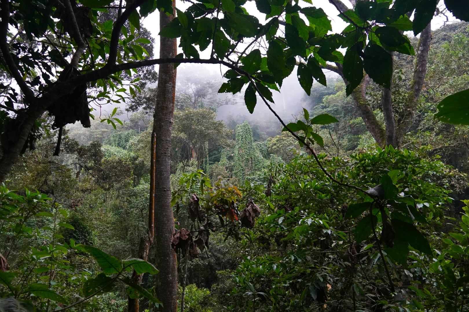 With our first week of volunteering concluded at UBHA school, we were free to spend a 3-day weekend hiking through the stupendous Chicaque Natural Park. On Saturday morning, we set out on a hike to visit one of its landmarks: Pico (the peak), which on a clear day offers a sweeping view of the valley below. (Pico is also short for Pico del Aguila, meaning “eagle’s beak”, which is what this formation resembles.) This wasn’t a particularly clear day, and in fact was either very foggy/ cloudy (hard to tell the difference at this altitude) or rainy most of the day — indeed, it never dried up much during our entire stay in the park, and our shoes stayed wet pretty much the whole time. But even on this mostly rainy/cloudy/foggy day we still managed to sneak in some pretty good peeks form the peak of the beak.