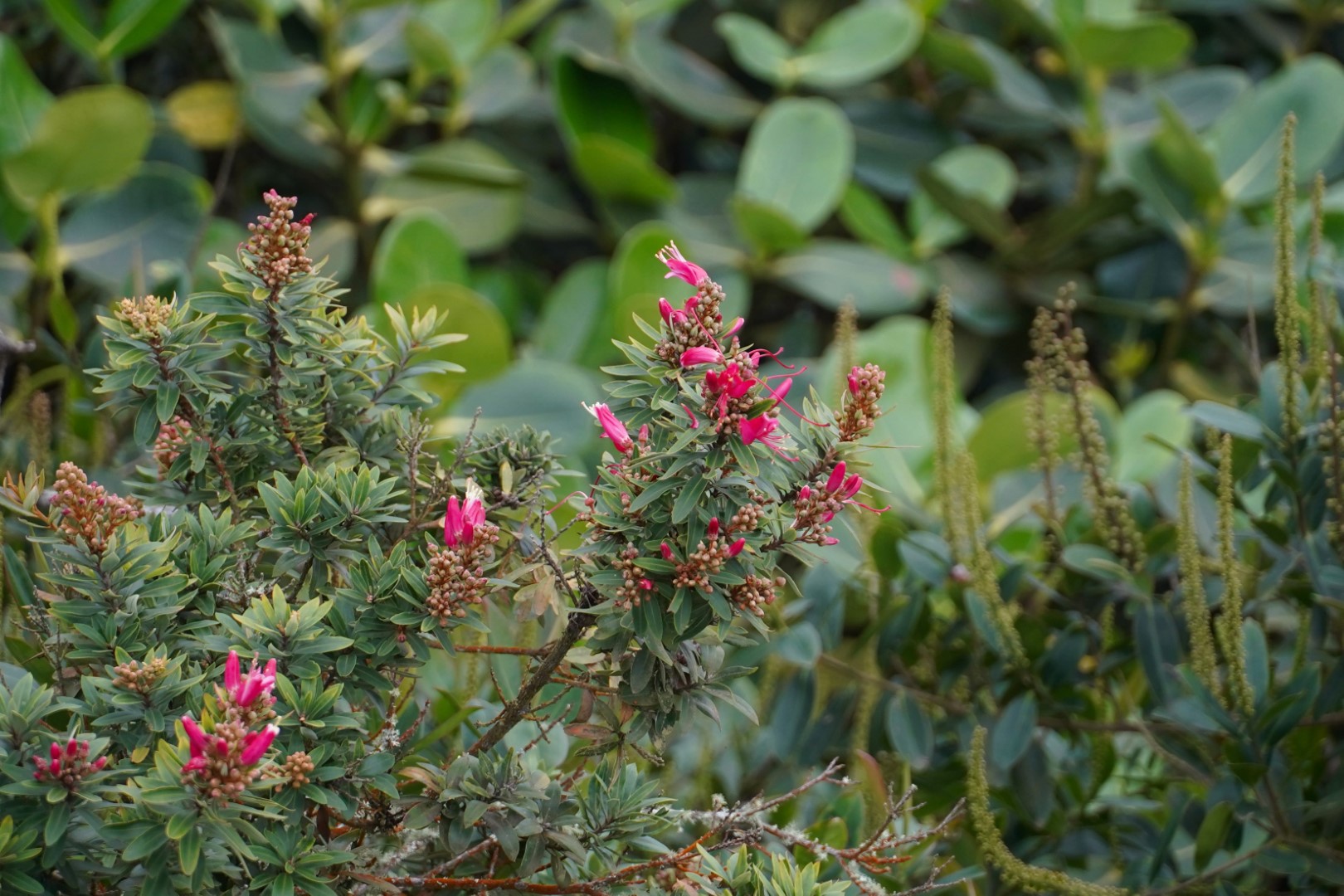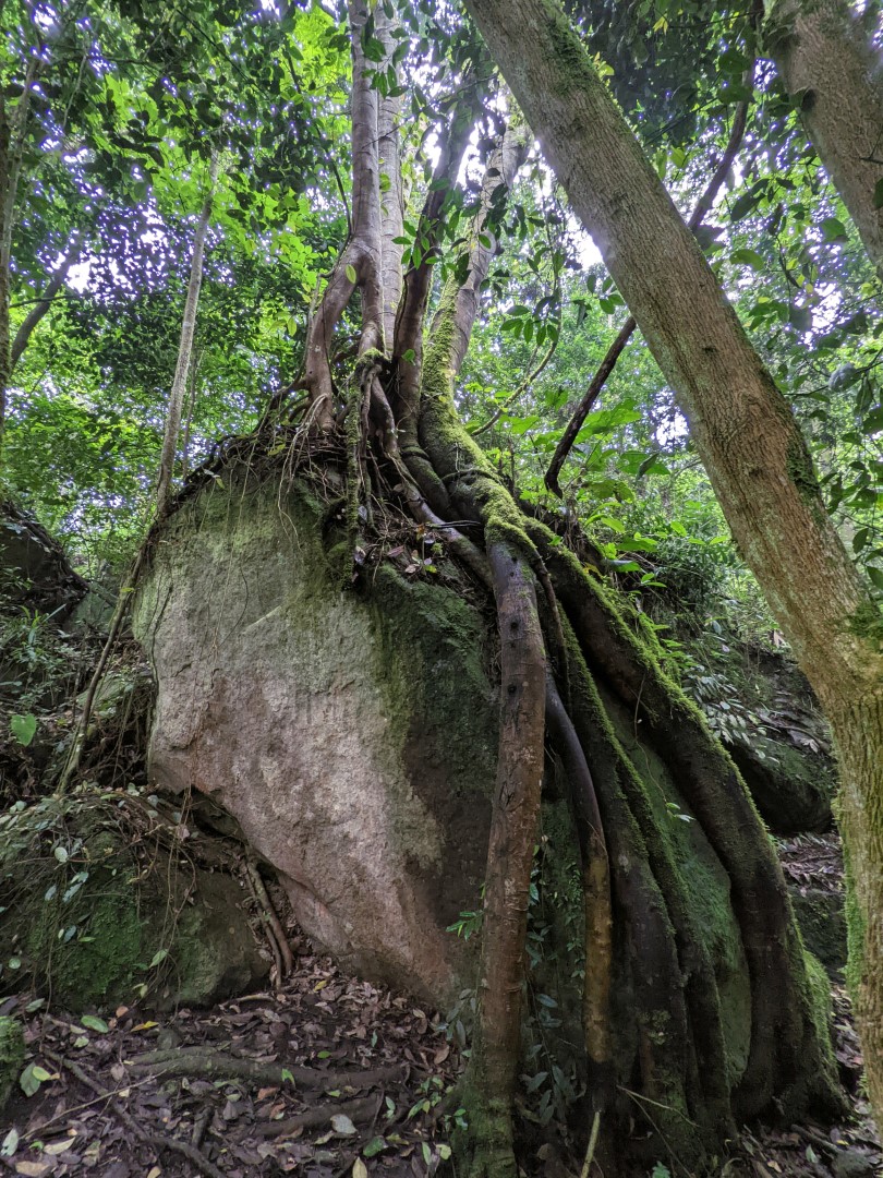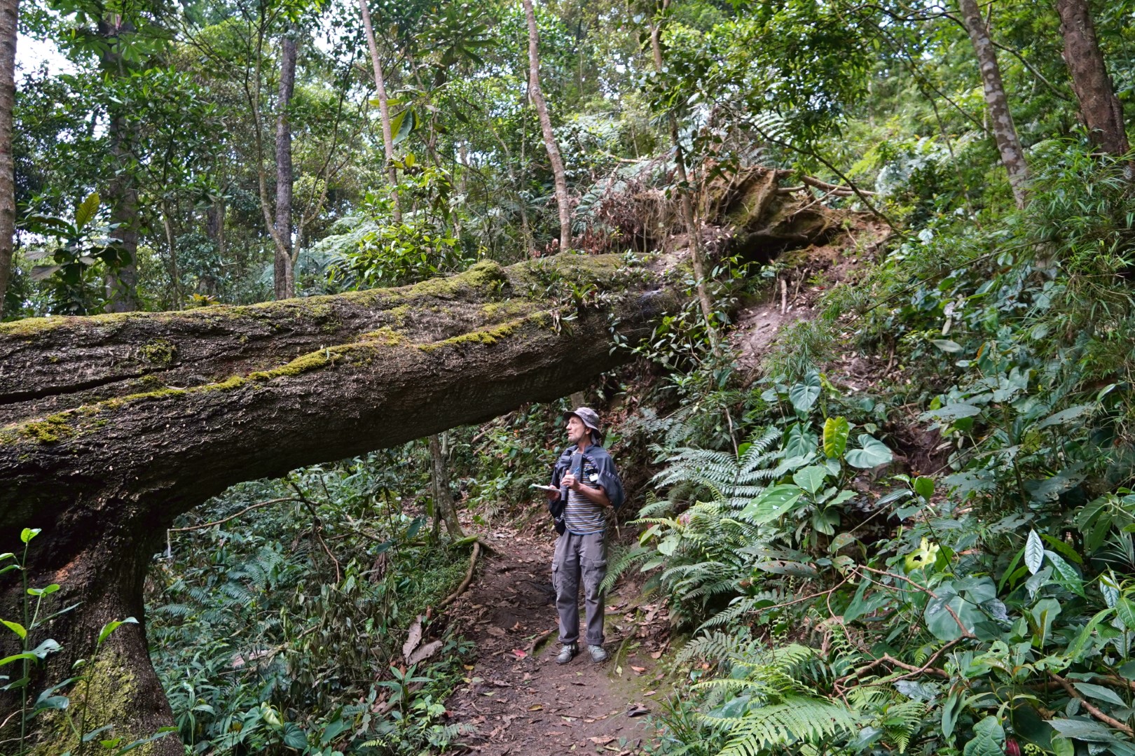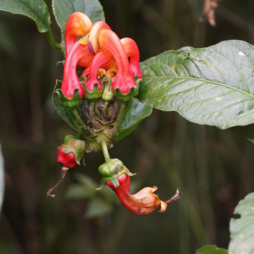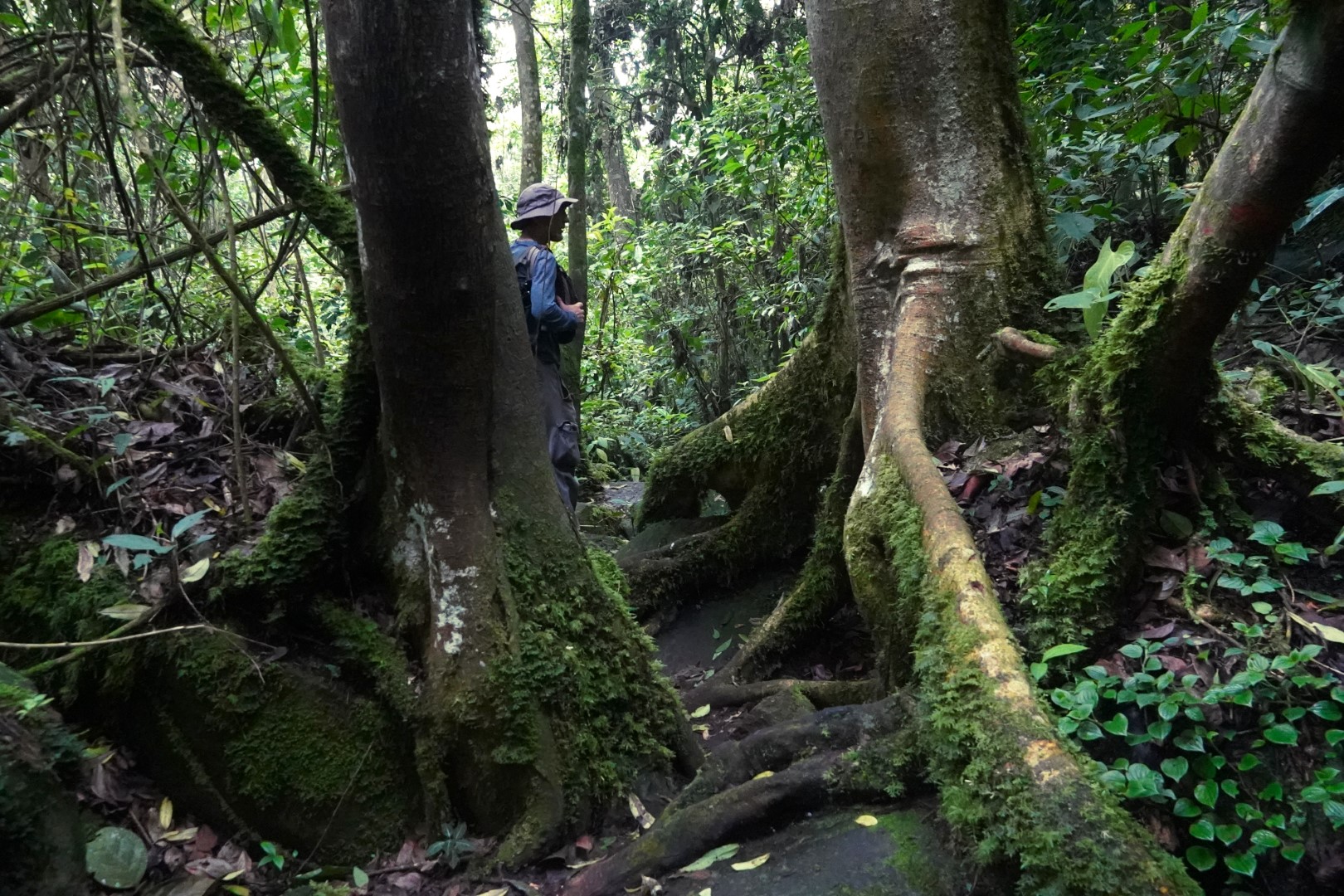 With our first week of volunteering concluded at UBHA school, we were free to spend a 3-day weekend hiking through the stupendous Chicaque Natural Park. On Saturday morning, we set out on a hike to visit one of its landmarks: Pico (the peak), which on a clear day offers a sweeping view of the valley below. (Pico is also short for Pico del Aguila, meaning “eagle’s beak”, which is what this formation resembles.) This wasn’t a particularly clear day, and in fact was either very foggy/ cloudy (hard to tell the difference at this altitude) or rainy most of the day — indeed, it never dried up much during our entire stay in the park, and our shoes stayed wet pretty much the whole time. But even on this mostly rainy/cloudy/foggy day we still managed to sneak in some pretty good peeks form the peak of the beak.