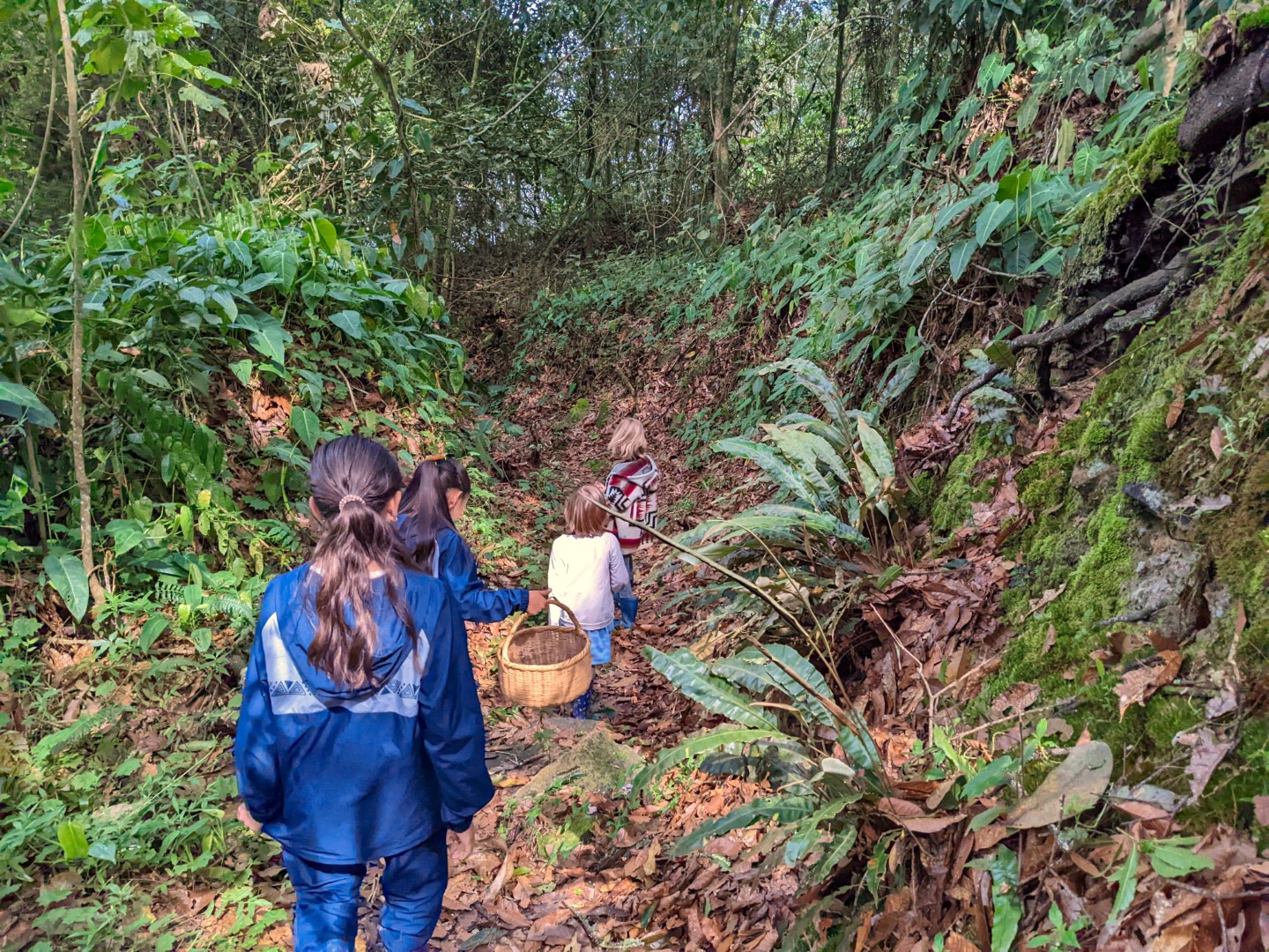 Once everyone had arrived, the teacher would go over the day’s schedule, which was just a list of opportunities rather than a rigid timetable. It might include the option to participate in art projects, cooking, or sports. One day a week, there was a music teacher who came in for while and committed music with those who were interested. One morning during this particular week, David (husband of school director Ruth) led the students in a mushroom-gathering hike.