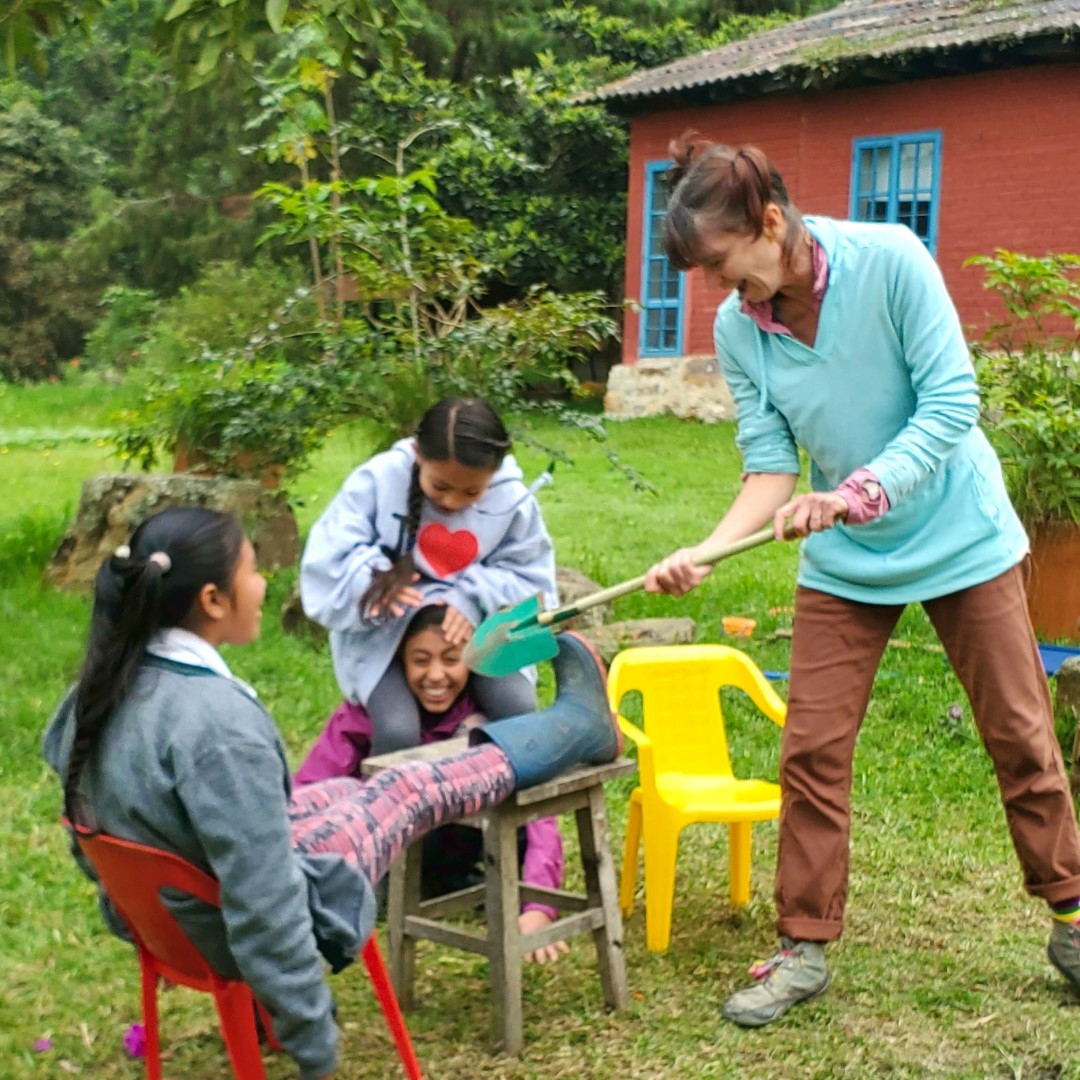 At the end of the school day, Kimberly walked some of the other students to their homes at the bottom of the mountain. Gingerly minding her step and trying not to lose her balance down the steep incline and loose gravel. Totally in awe of the seven-year-old student who did the same hike with shorter legs while carrying a full-sized pizza and a backpack.