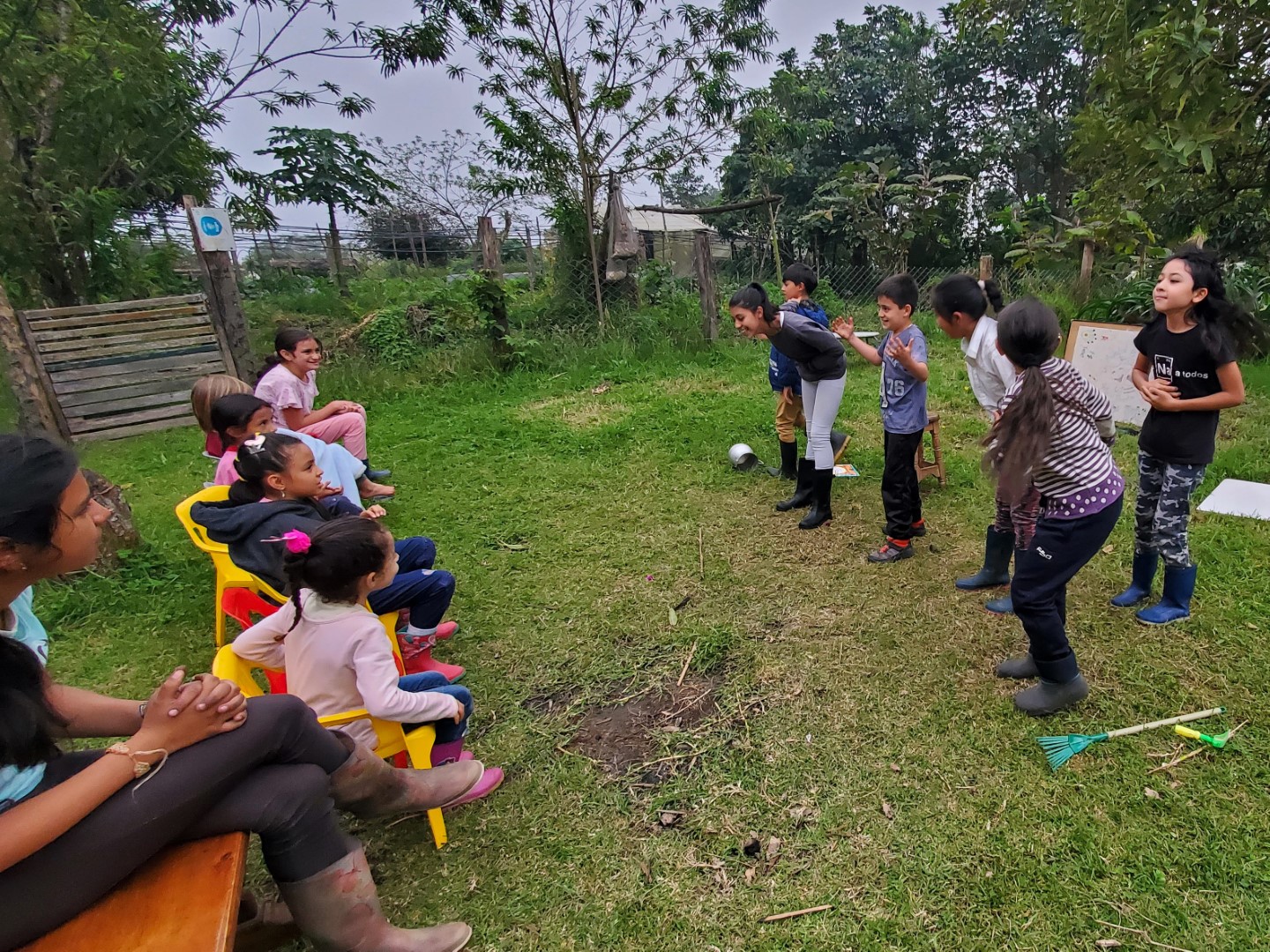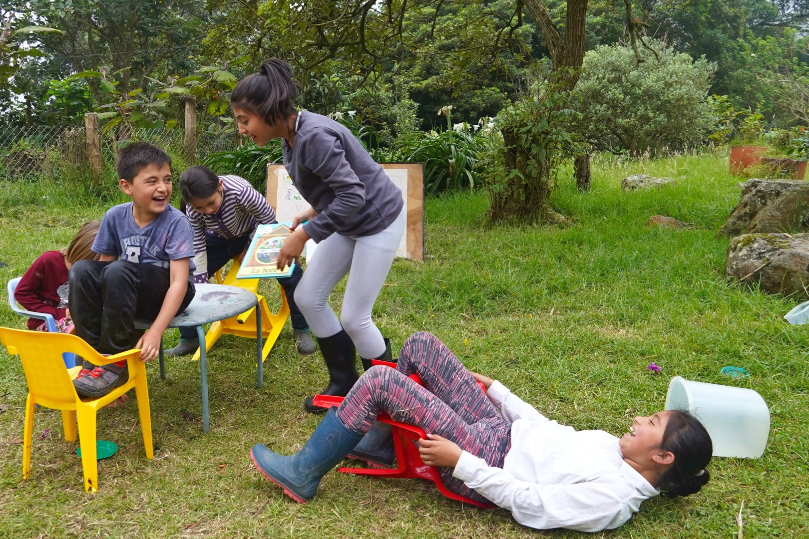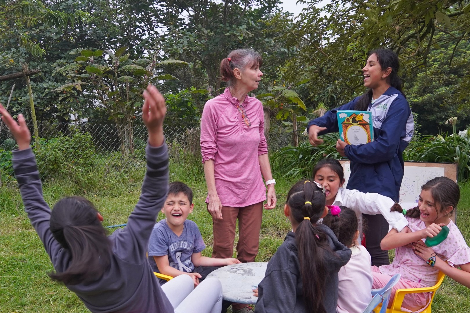 And we guided them in some improv skits, which we dubbed “Restaurant of the Absurd”. The setting is a restaurant, with the patrons making outrageous demands and wild orders, and the staff also engaging in unorthodox behavior. The order is wrong, the bill is too high, the customers don’t know how to sit on a chair, the waiter is rude, the customer is overcome with joy when the food is delivered, the cook throws the food, a cow is milked – those are just some of the scenarios that were improvised. Oh and as we practiced using our limited Spanish, they practiced English and we all met somewhere in the middle.
