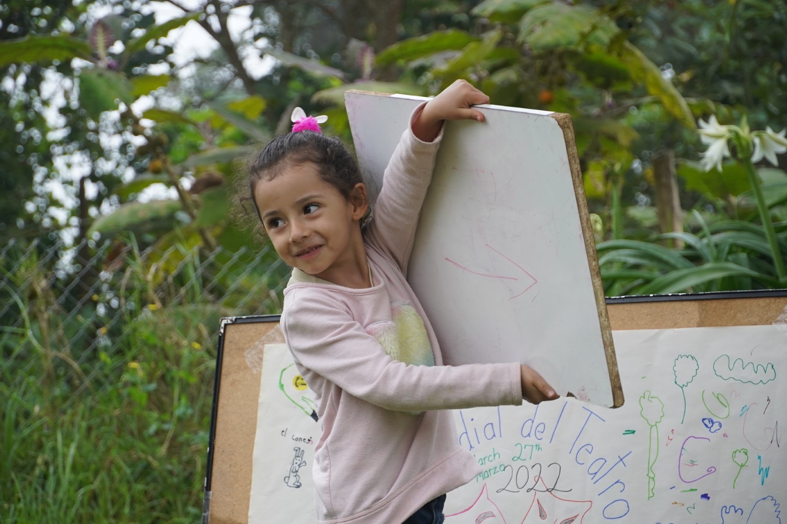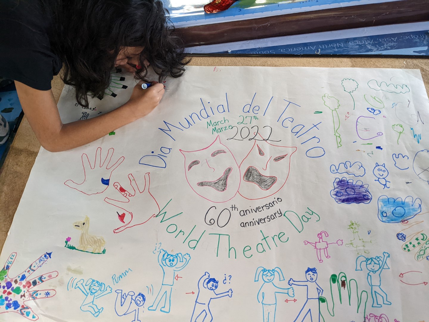 This week, the focus was on coaching the students to perform some theatrical pieces in observance of World Theatre Day, which is celebrated on the 27th of March every year. Following our example, they presented “The Silly Boy”, “Red Riding Hood”, and other stories. They also made a commemorative poster for the 60th anniversary of the event.