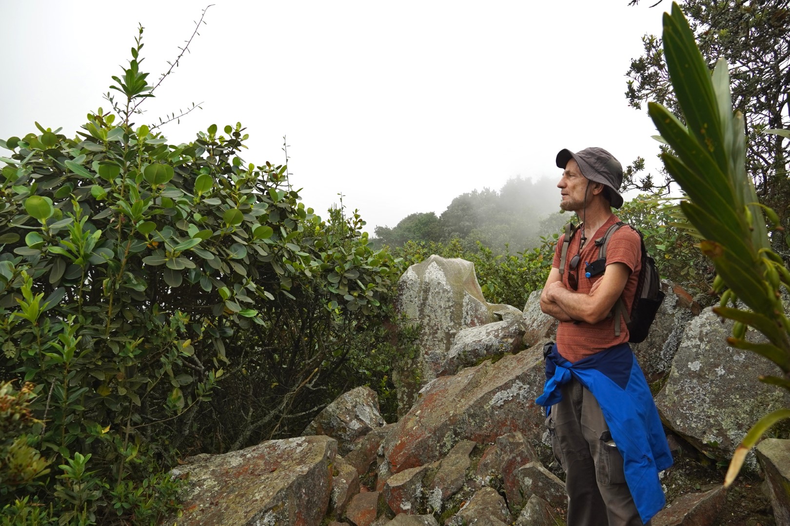 On Saturday, we had one more day of exploring the park. The path we took this time was to El Roquedal, which is an extension of the path to Pico del Aguila. In other words, another peak with a lot of interesting rock formations and vegetation, and a rather strenuous workout. And in the evening we gave the monkeys one more chance to encounter us. There are night monkeys and sloths living in this park, and you’re supposed to be able sight them in certain places (including near our house) and at certain times — just after twilight for the simians. But alas, we struck out, and never got a glimpse of either elusive critter. They’ll have to wait until the next time we come here to meet us. And we do hope there is a next time.