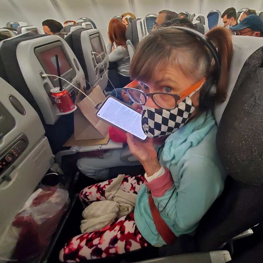 Then we boarded the plane and found that the seats were rather comfortable. The passengers were somewhat less so. The fellow sitting next to Kimberly insisted on commandeering the armrest and spilled his Coke — mostly on himself, but a little on her as well. There were outlets for our gadgets, and we managed to score a passable vegetarian meal (we hadn’t been aware that meals were included in the ticket price, so hadn’t reserved one, but they scrounged up a couple for us anyway.) Then we settled in for a few hours’ sleep as we headed across the Big Pond to a new country on another continent.