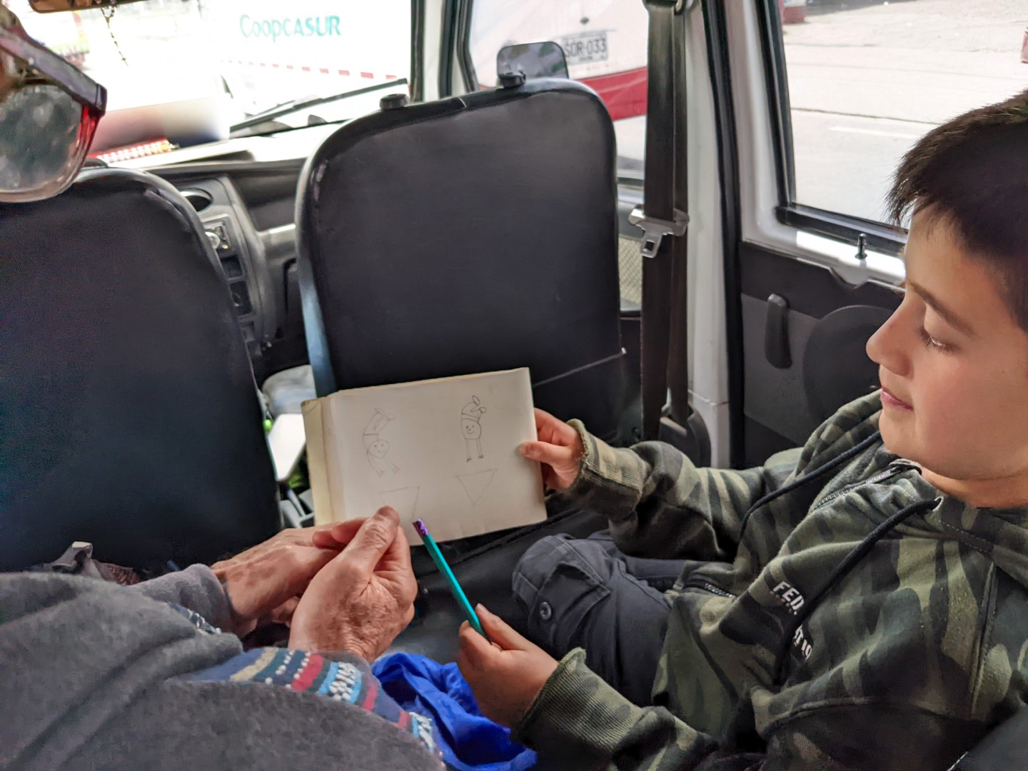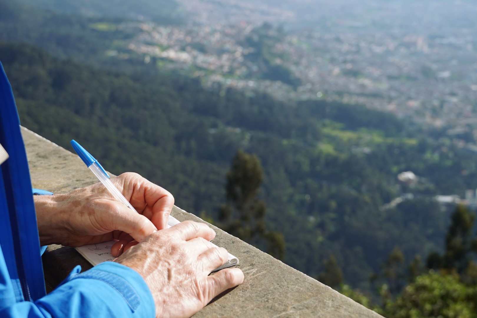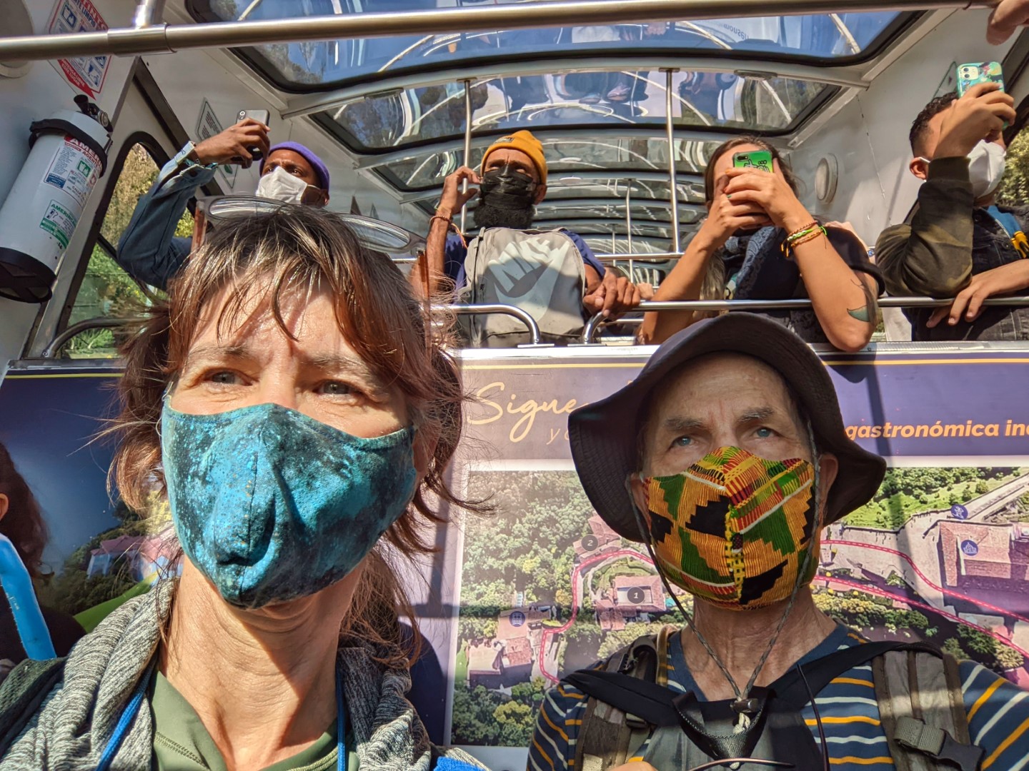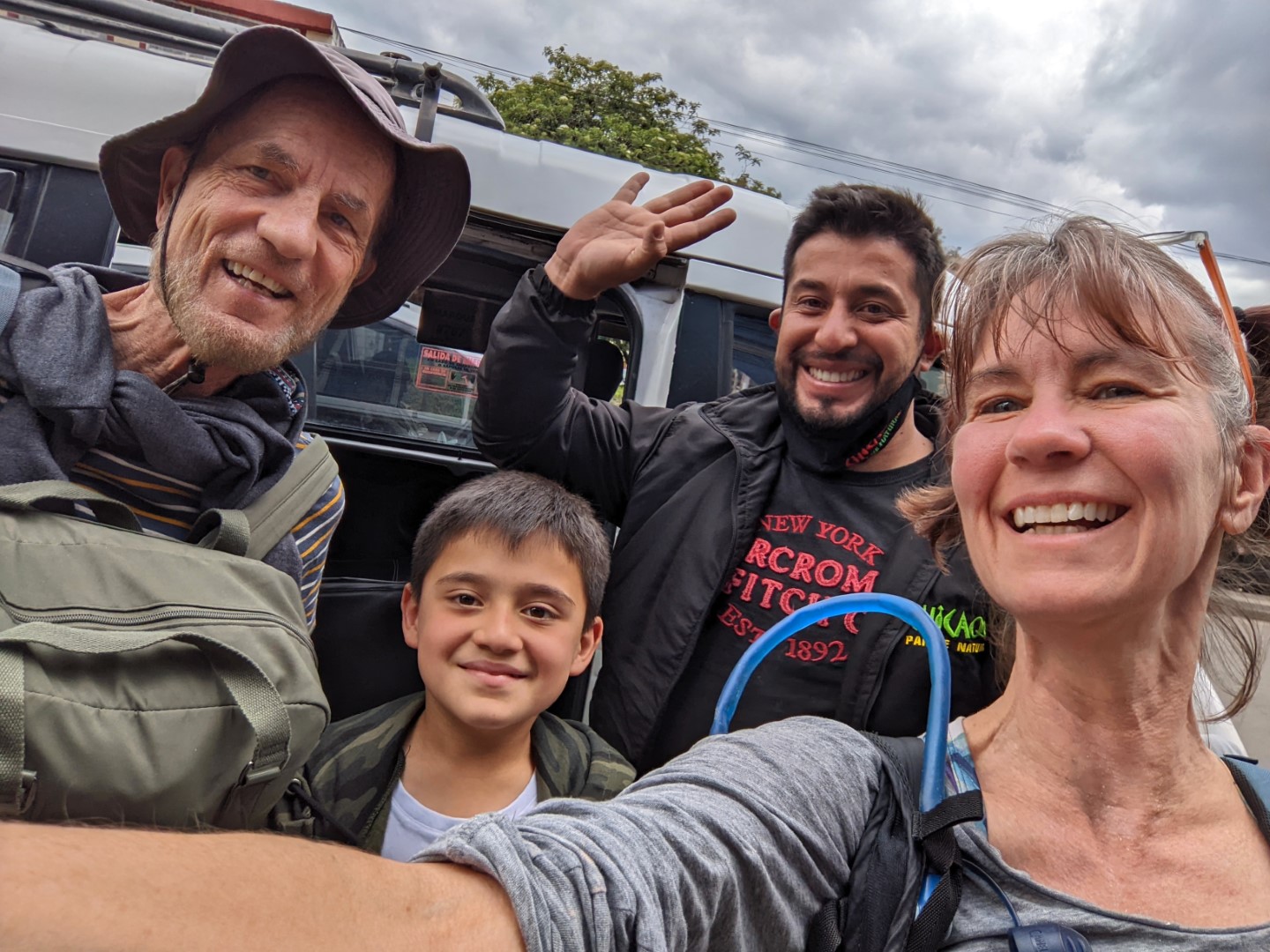 On Sunday morning, we loaded our gear onto one of those little electric carts that had brought us down three weeks earlier and a driver took us on the steep climb back, back up to the entrance. (It wasn’t until days later that we realized we’d left behind our water filter that we used to help make questionable tap water potable.) There we met up with a shuttle driver who happened to be the uncle of one of our students, to drive us into Bogota. The student himself also came along, and we were glad for the opportunity to spend some time with him and encourage him to continue in theatre — he shows real talent in that field.