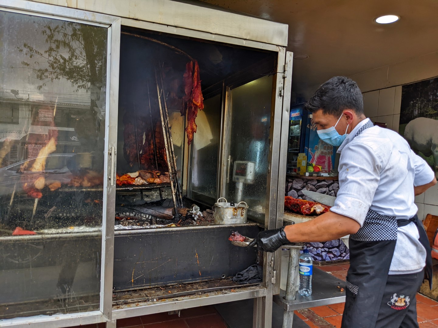 After we got settled in we took a hike of about 2.5 miles to a mall in quest of a few items we needed, including reading glasses. It’s ironic that in the U.S. we almost never hit the mall, but on this trip we’ve malled several times, because it’s often the only way to find some of the things we need — or have convinced ourselves we need. It was a contemporary American-style mall, but we still pretty much struck out. The walk back, however, was interesting, as we had occasion to witness some of the buskers that often perform between green lights at busy intersections in Latin American countries. These include jugglers, acrobats, and other assorted circus type performers.