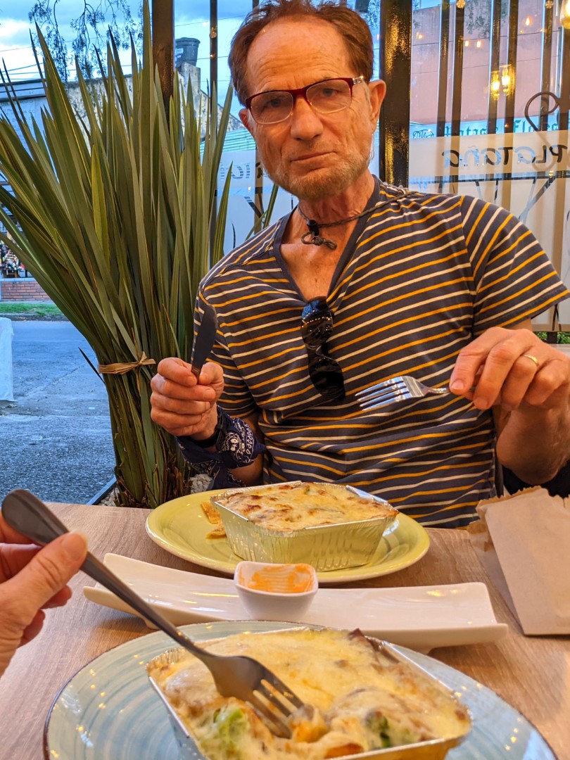 Additionally, we enjoyed a most memorable meal, one of our rare times to eat out. As evening approached and we made our way home, we decided to try having dinner in a restaurant rather than taking the time to go shopping and then nuke whatever we’d bought. And we stumbled upon an excellent establishment at which to execute our plans: a restaurant that specialized in dishes made from/ incorporating plantains. Literally everything on the menu.