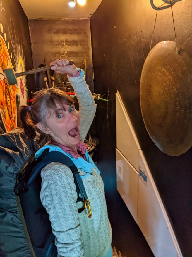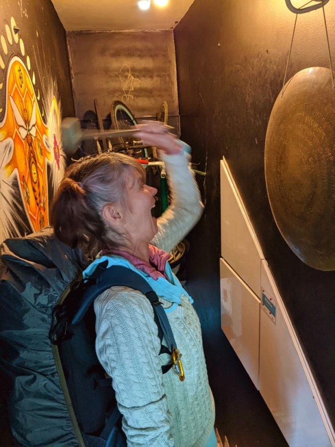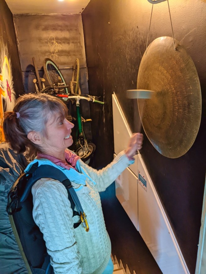 The hostel, called Mandala Hostel, caters to yoga enthusiasts, which is why it caught Kimberly’s eye. It offers classes at times, though it didn’t while we were there. And there’s a little geodesic dome on the rooftop which serves as a yoga studio, and is accessible to all guests. In the hallway was a gong that guests traditionally strike upon arrival. Just because.