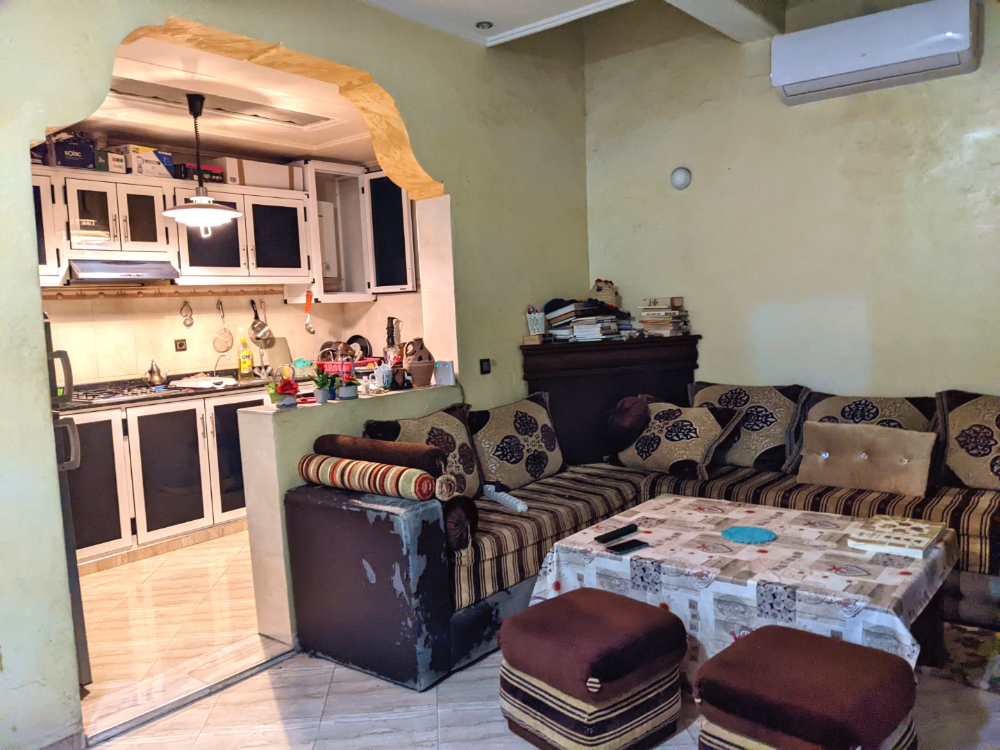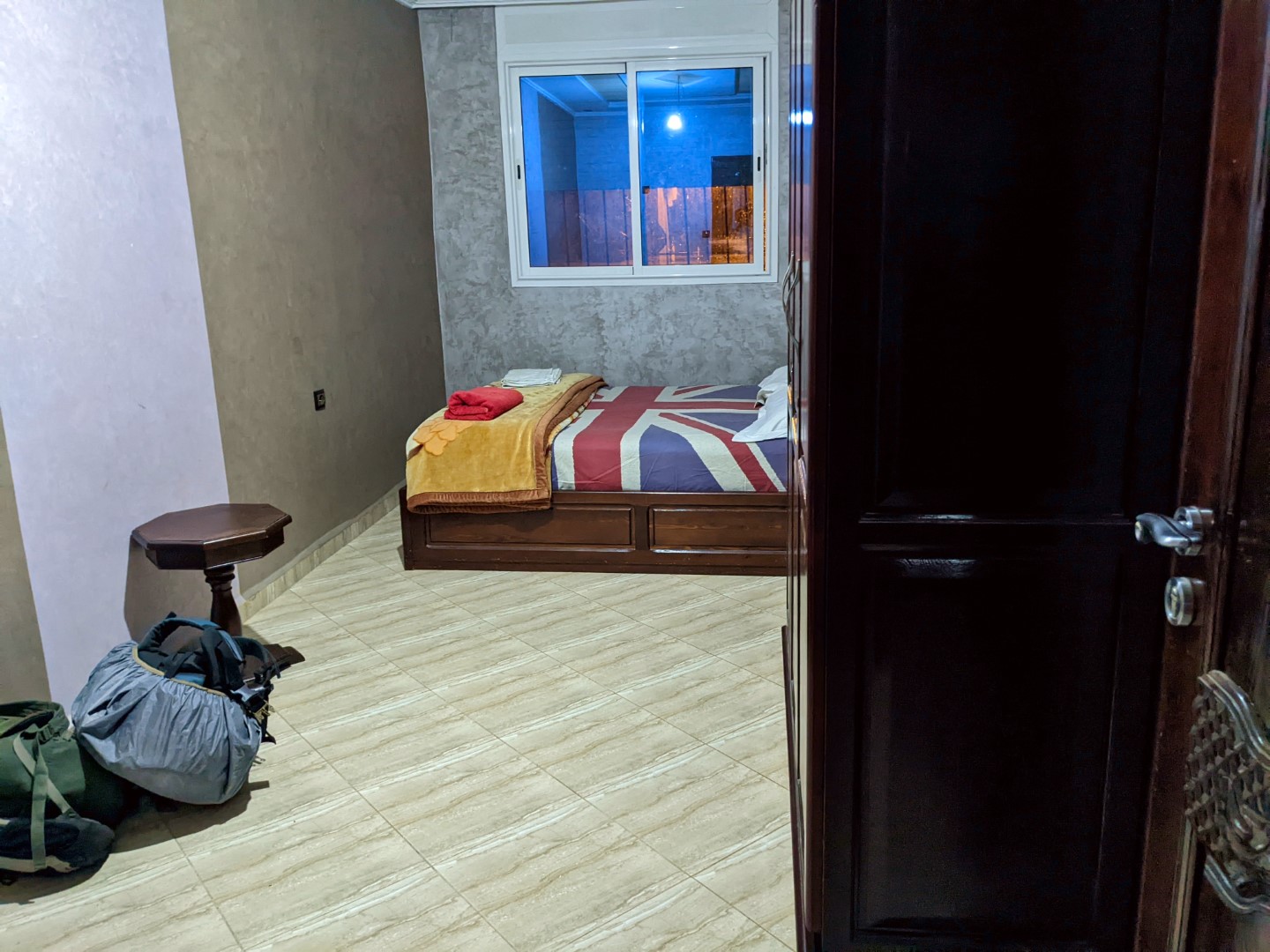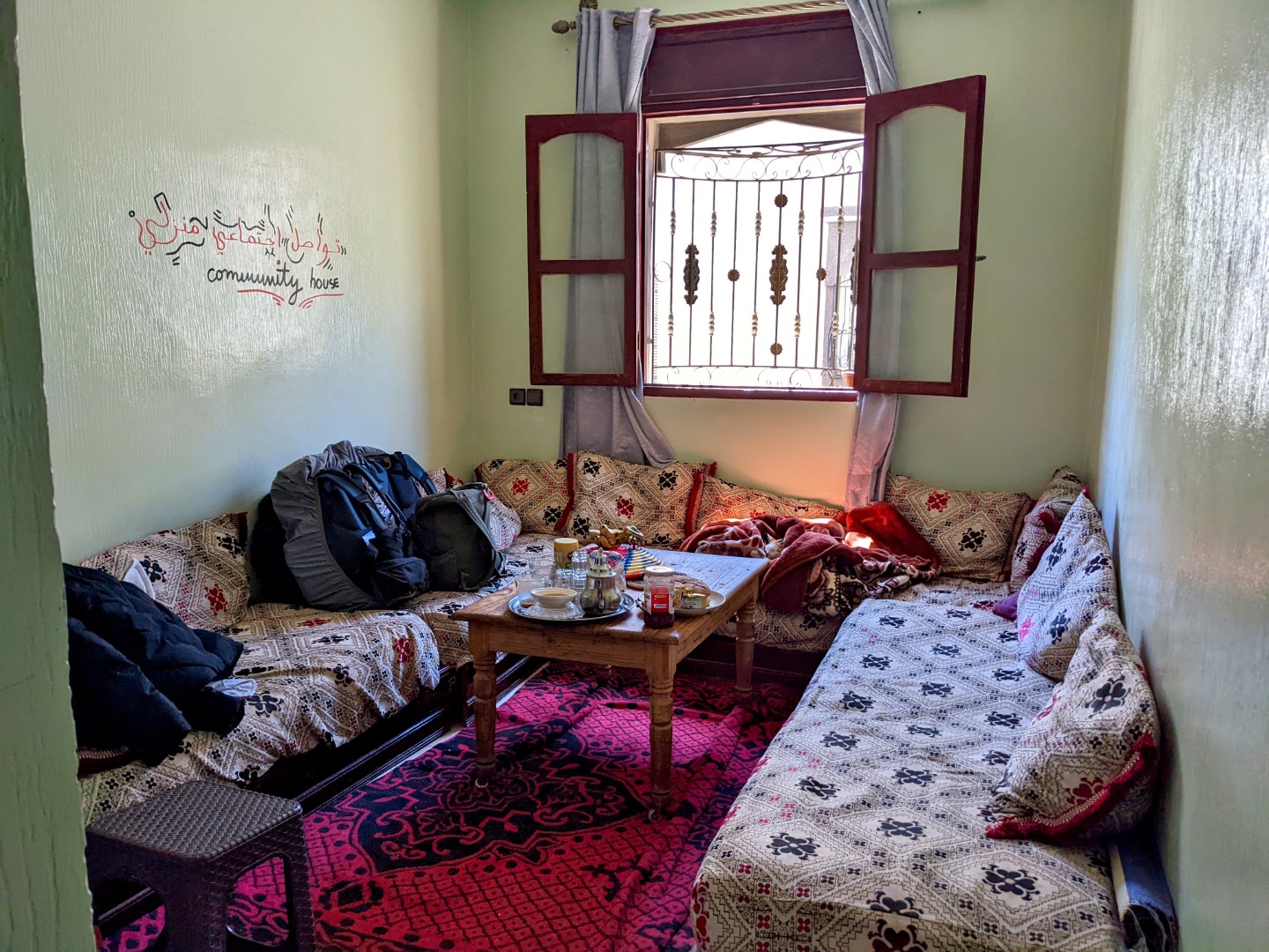 Rachid would not be able to put us up again, since he’d already booked out the room to someone else. But he assisted us by contacting the host, named Ahmed, of another Airbnb with whom he was acquainted, and arranged for us to go there for one night. It was a place that we’d already considered, and even contacted with a couple of questions, when we were arranging our stay in Agadir, and ended up selecting Rachid’s place instead.