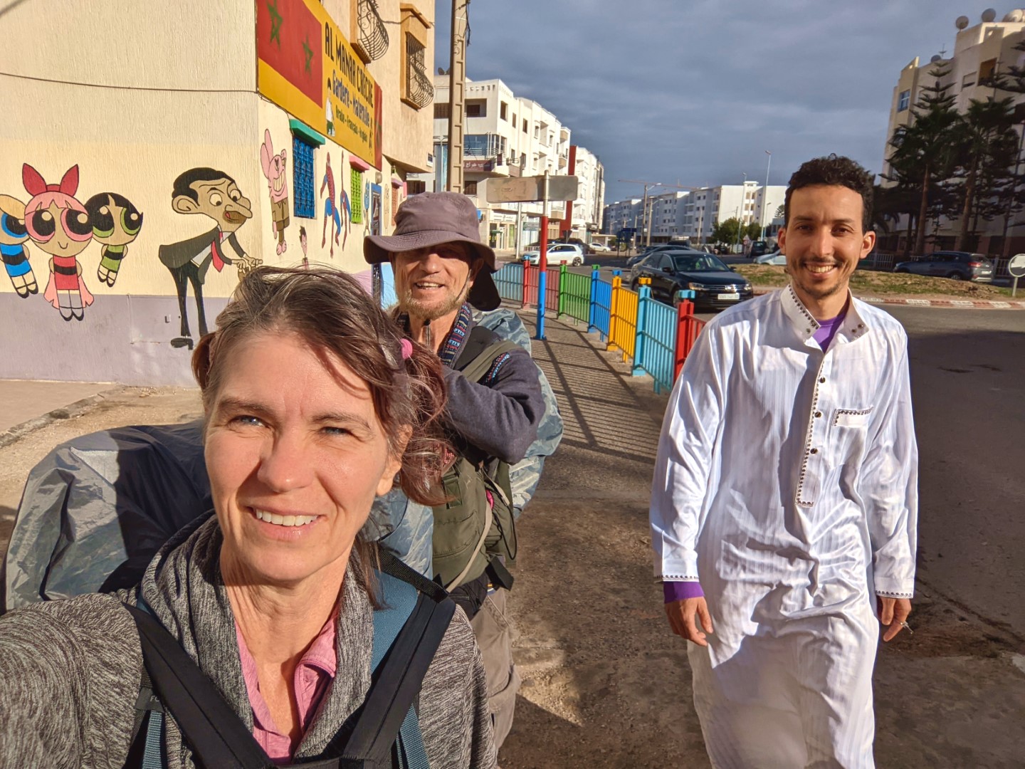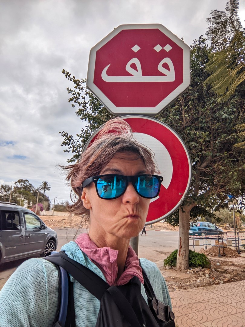 At about 8:00 p.m. on the night of April 2, we landed in Agadir, Morocco, having been through a relatively pleasant flight from Madrid. Then we stepped through customs pretty quickly, even though we hardly knew a word of Arabic, and exited the building. And, voila! we were standing on African soil for the first time ever. A short time later, we were picked up by our Aribnb host, Rachid, who drove us in a borrowed car to his flat.
