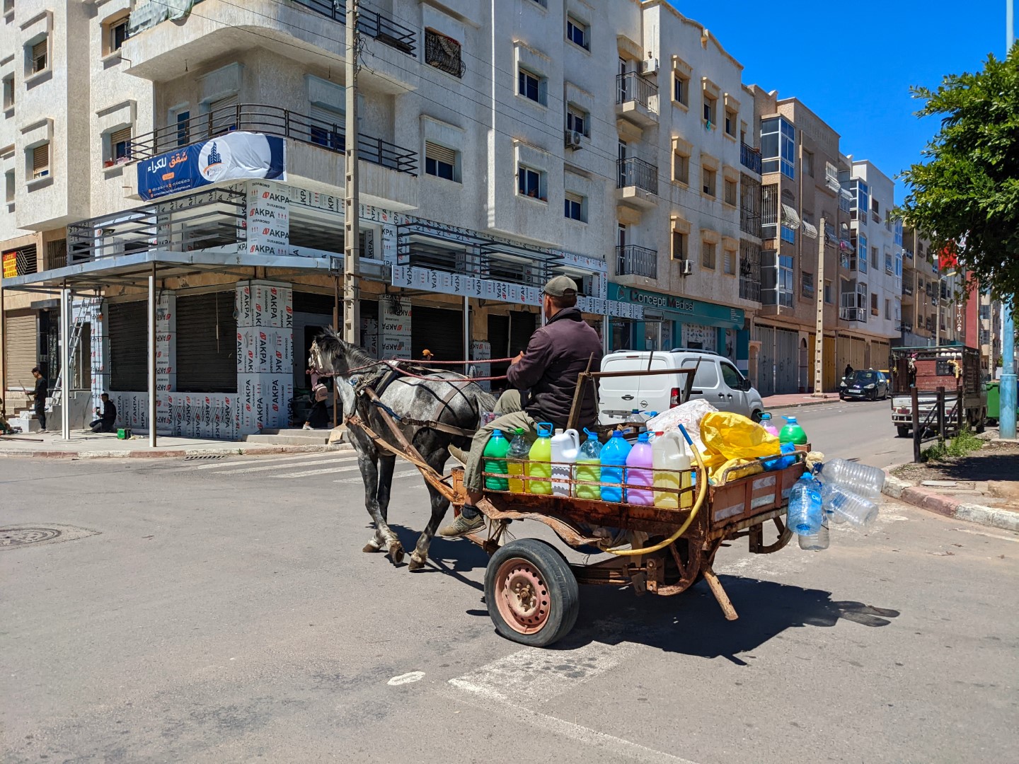 The day after our arrival, we went out to get a handle on the landscape, which looked quite different from anything we’d been exposed to before. There was the distinctly Arabic clothing that many people wore, of course. And there were the mosques everywhere, all conforming to a similar type of architecture, with simple square minarets. And there were the donkey carts that people relied on, hauling produce and other goods just as they have done for generations.