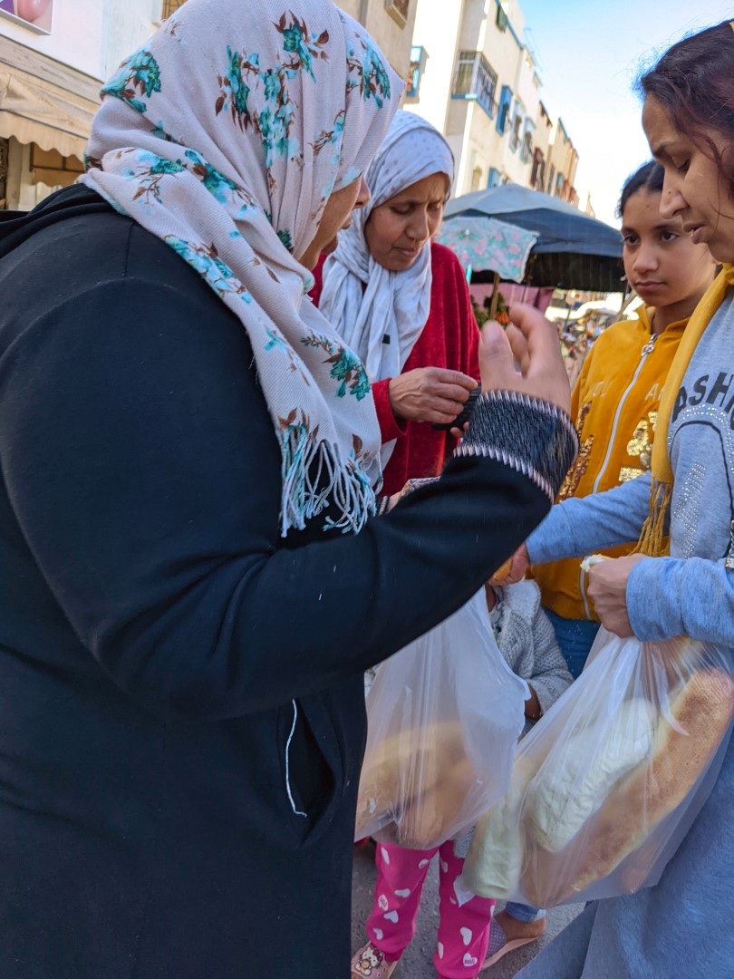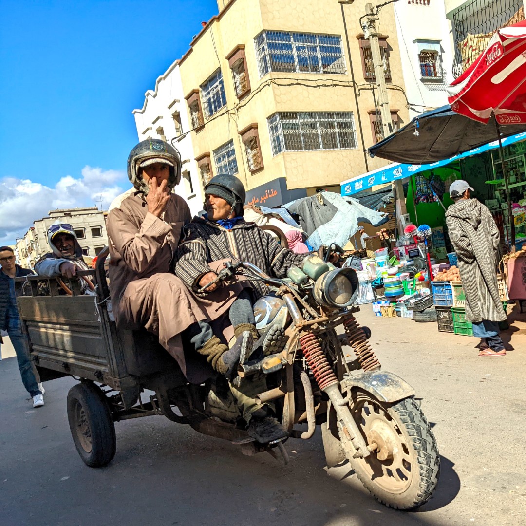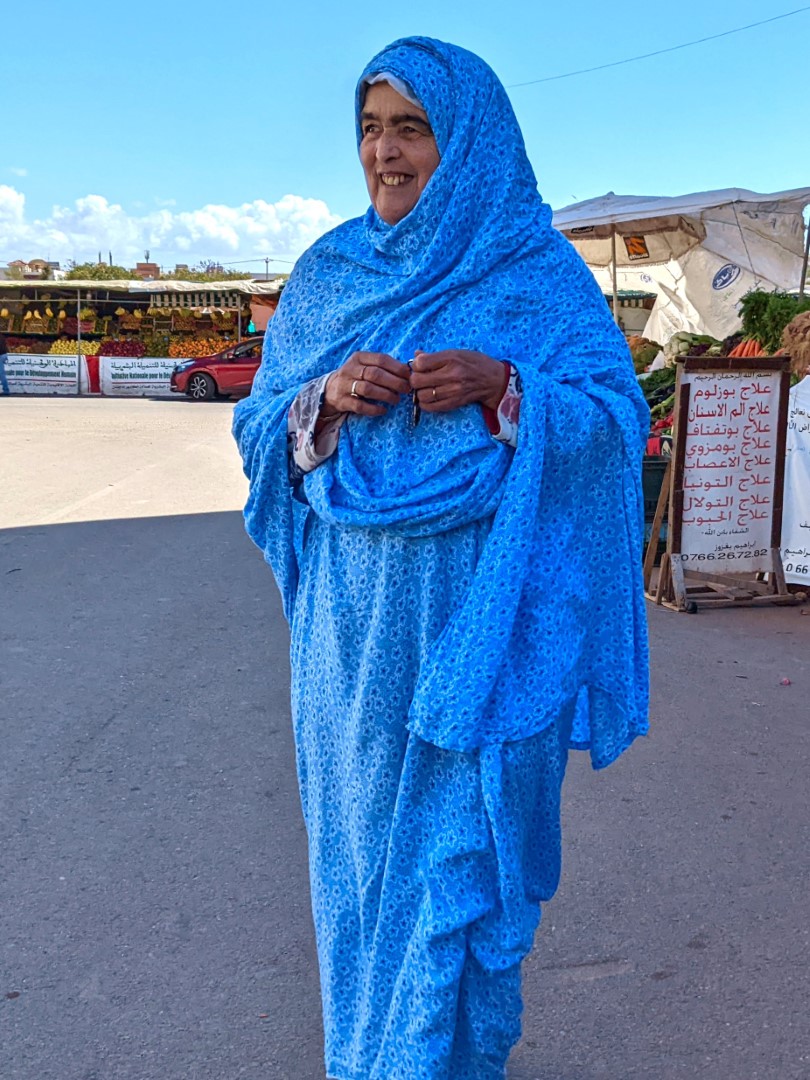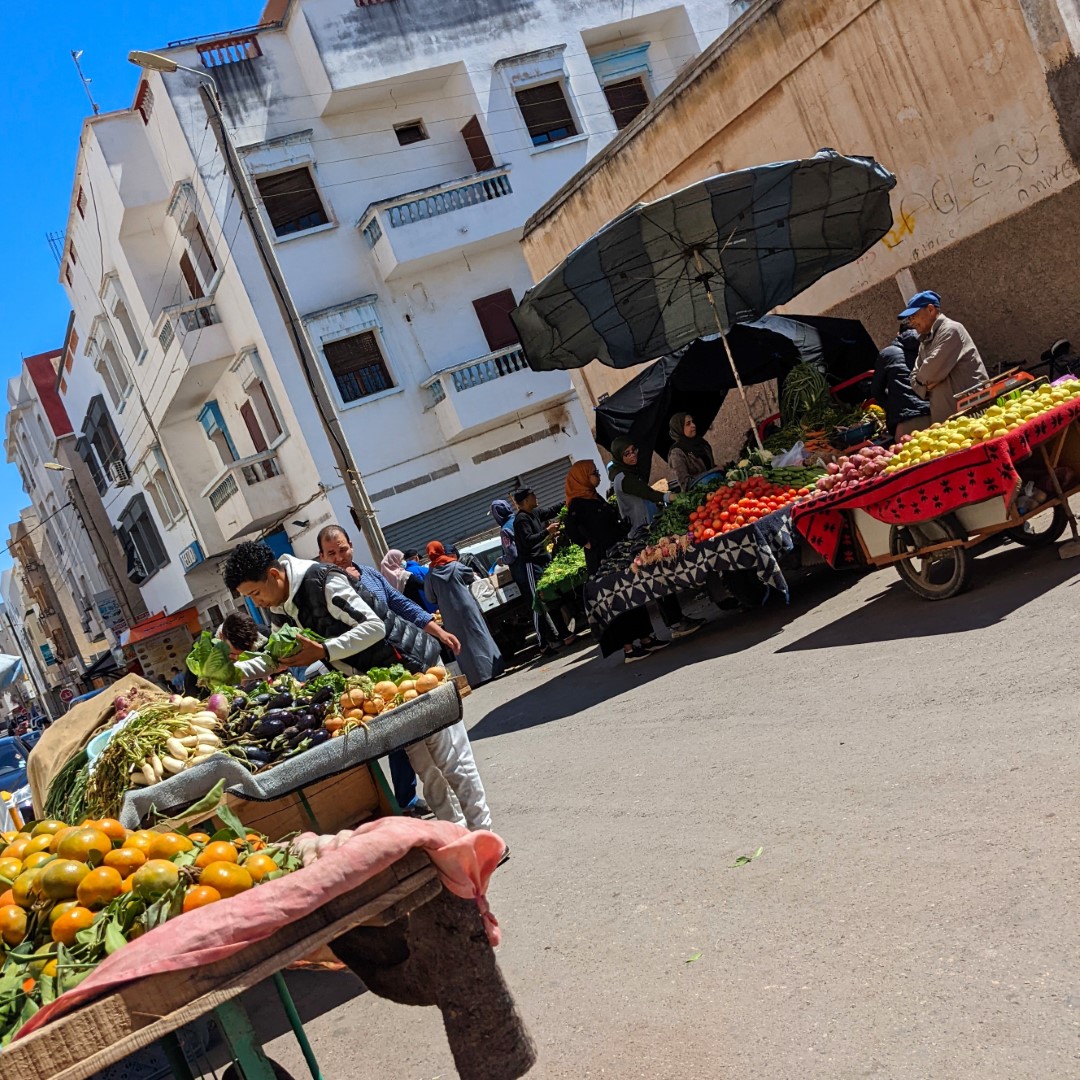 It was about an hour’s ride to our destination in the city of Ouled Teima. Along the way, we stopped at a market so the mom could go buy some things for dinner. This included fish – she didn’t realize at first that we were vegetarians (very clearly outlined on our WorkAway Profile by the way). She bought the fish and put it in the floor for the rest of the ride, so we had a nice aromatic final leg of the trip.