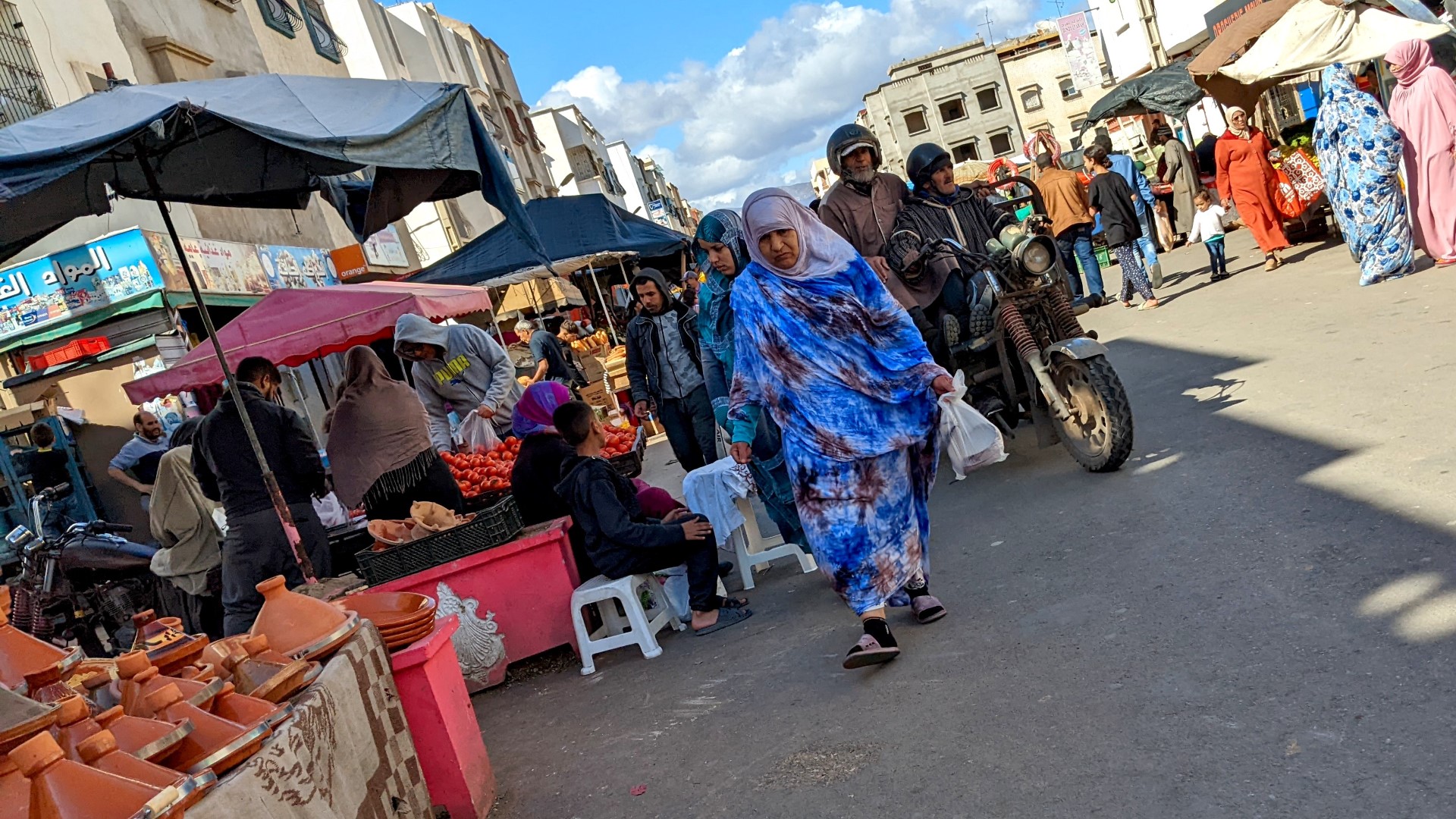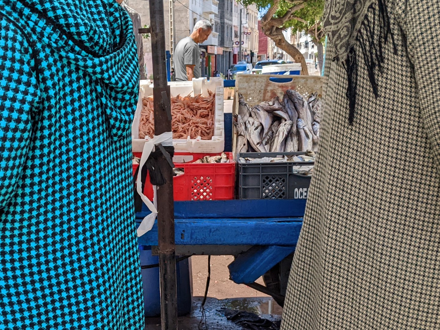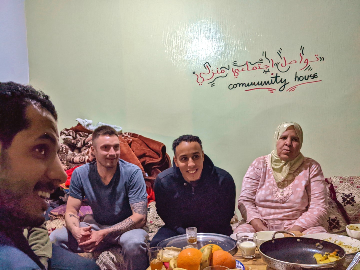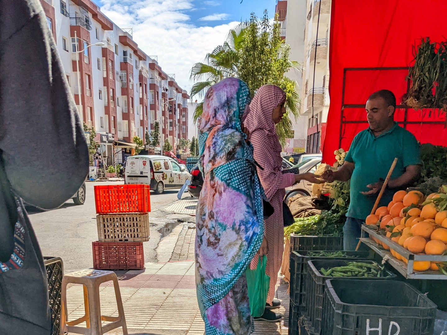 It was about an hour’s ride to our destination in the city of Ouled Teima. Along the way, we stopped at a market so the mom could go buy some things for dinner. This included fish – she didn’t realize at first that we were vegetarians (very clearly outlined on our WorkAway Profile by the way). She bought the fish and put it in the floor for the rest of the ride, so we had a nice aromatic final leg of the trip.
